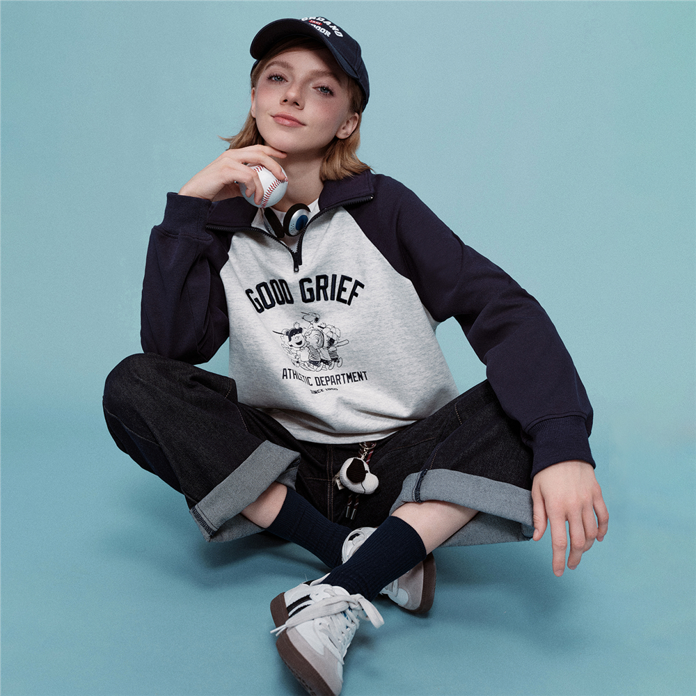 女短款 时尚 拼色插肩袖 上衣小个子复古秋显瘦套头衫 修身 森马POLO衫