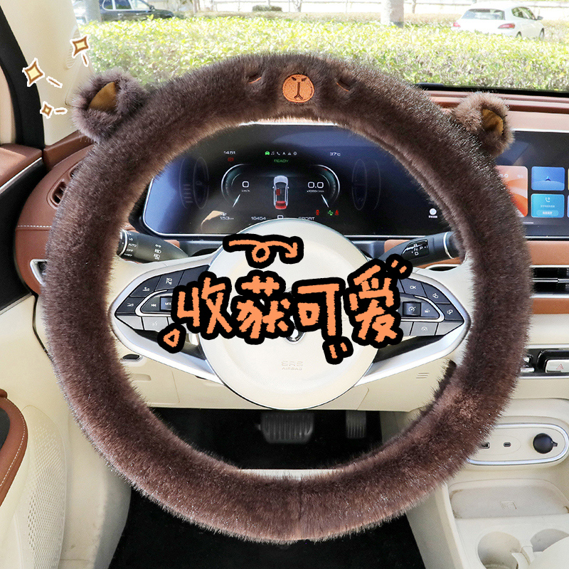 2025新款 毛绒保暖防滑吸汗男女通用型方向盘把套 汽车方向盘套冬季