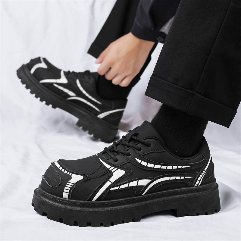 工作增高百搭潮鞋 男鞋 小众休闲运动黑色厚底德比板鞋 2025新款 冬季