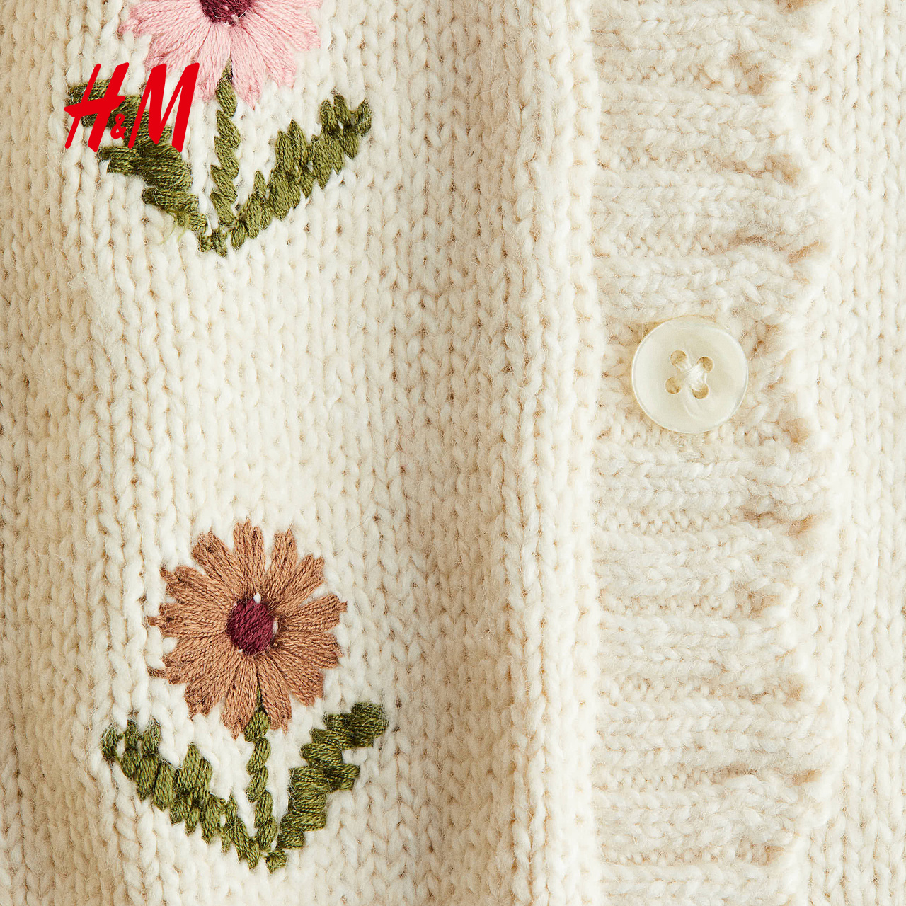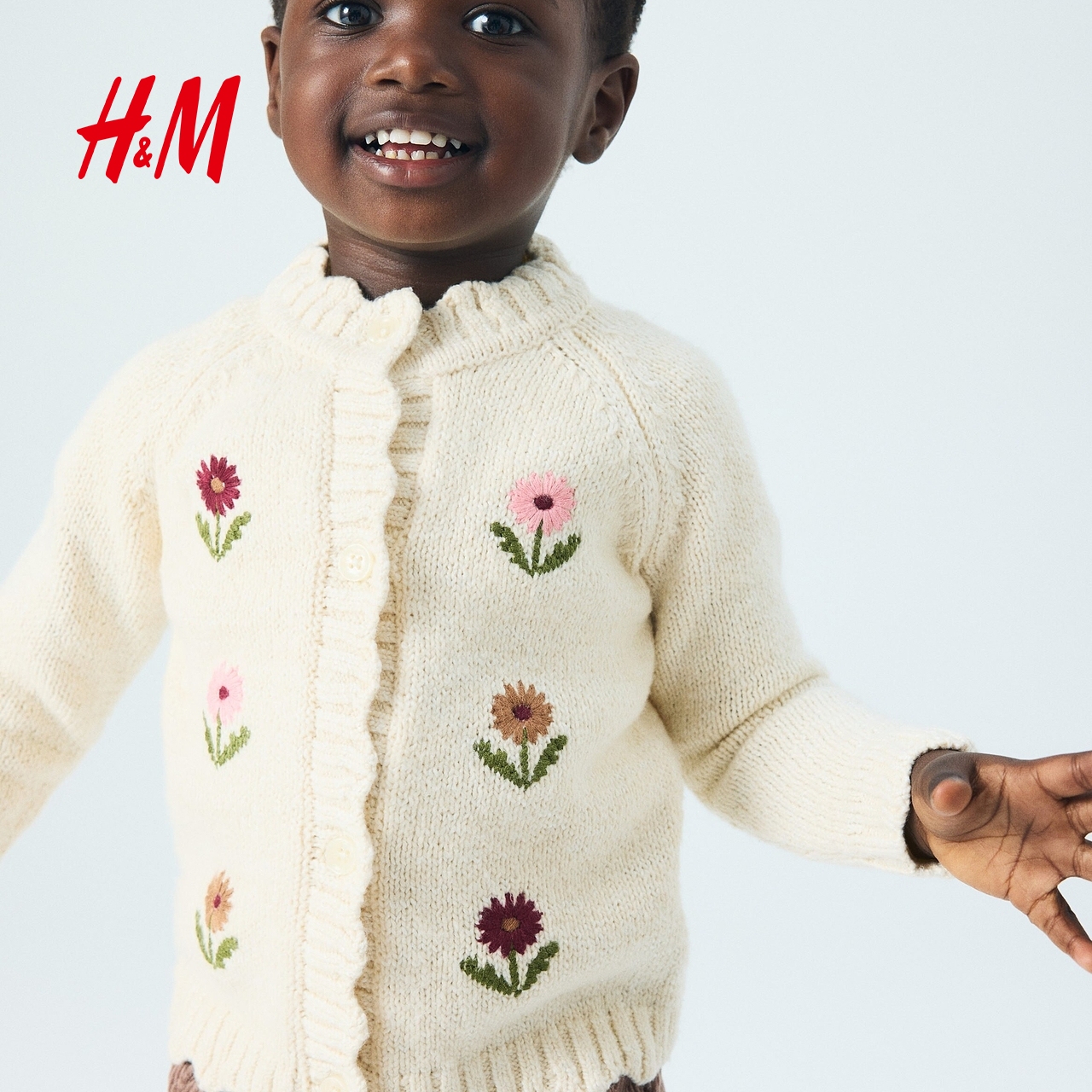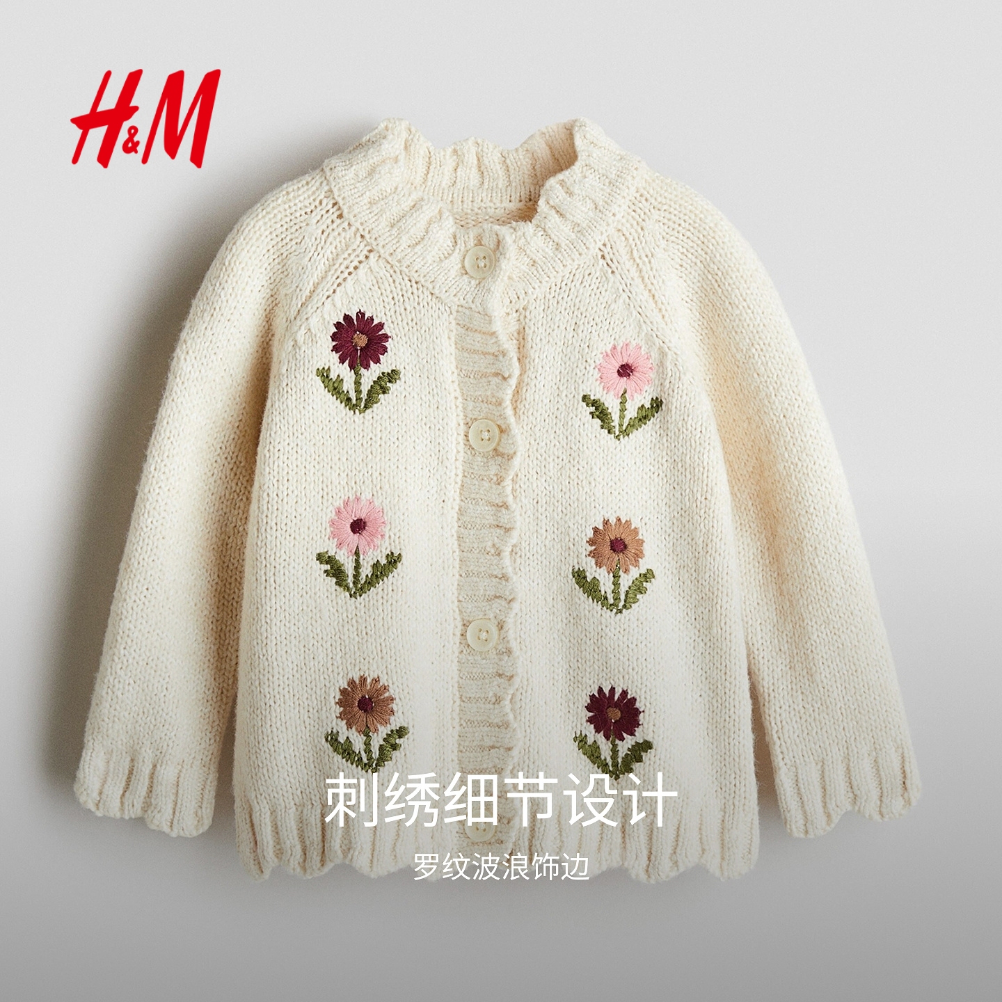 刺绣单排扣开衫 圆领插肩袖 外套1251898 女婴毛衣2025秋新款 HM童装