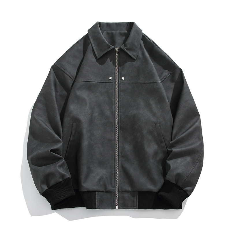2025新款 秋冬季 麂皮绒加绒机车夹克棉服 翻领皮衣外套男士 回力美式