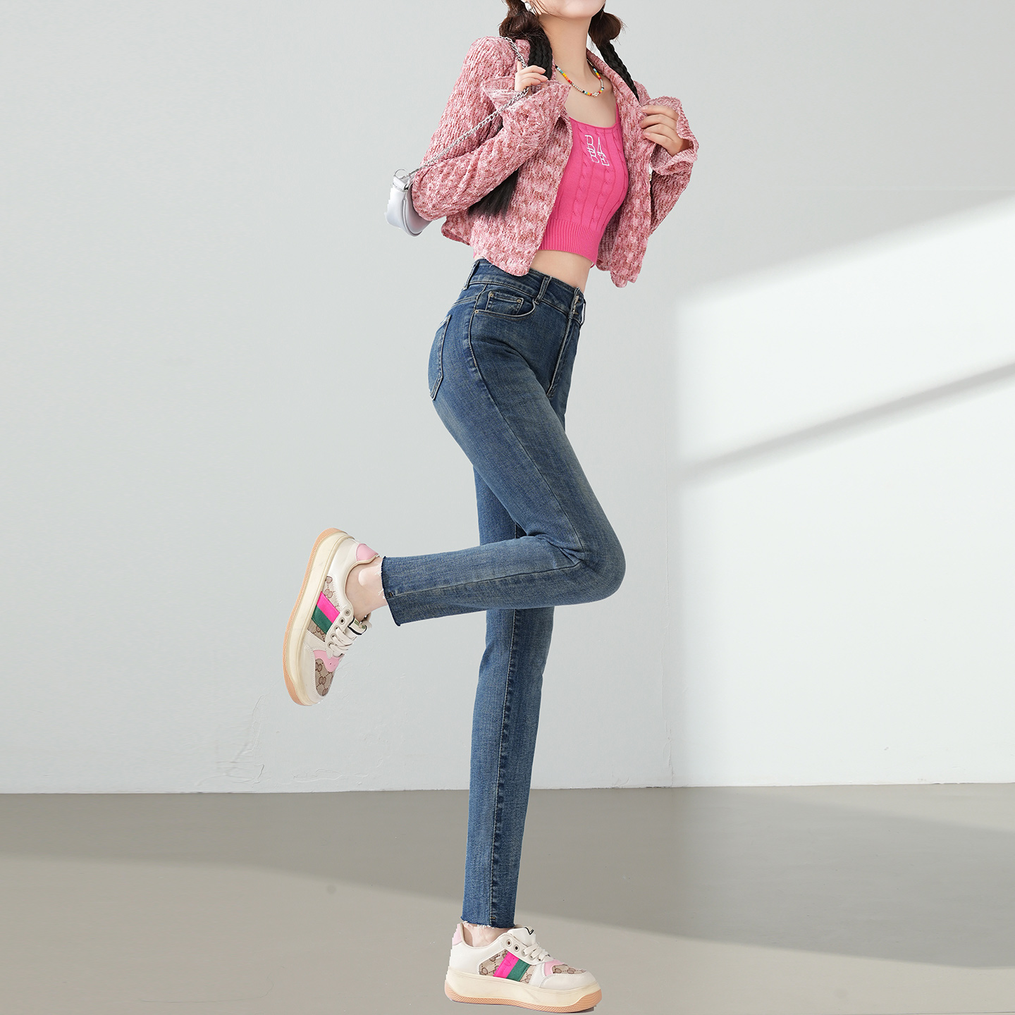 显瘦蓝色九分小脚裤 小个子修身 子 女2025年春秋新款 高腰紧身牛仔裤