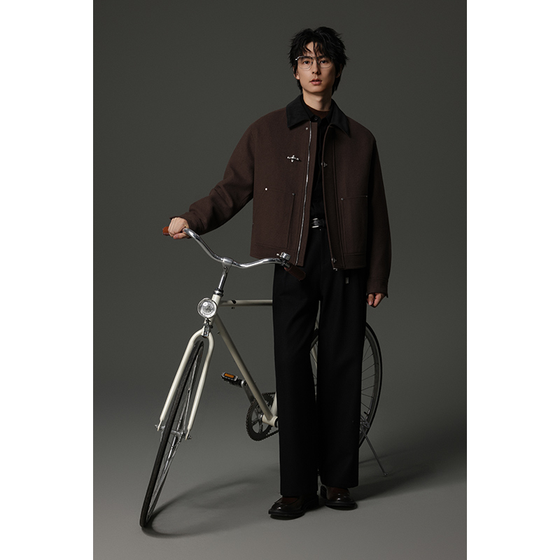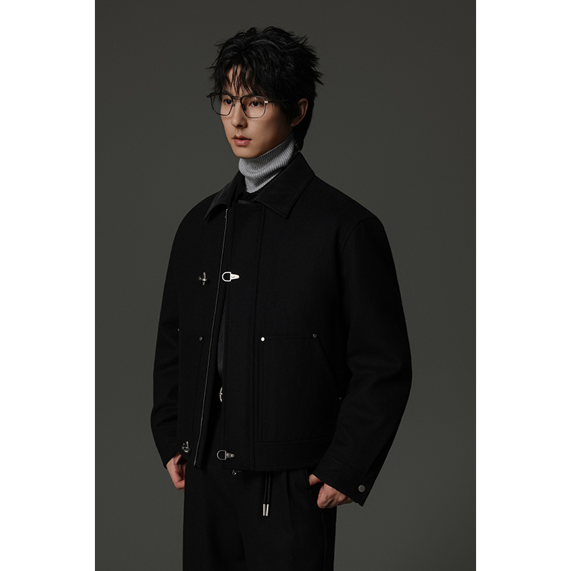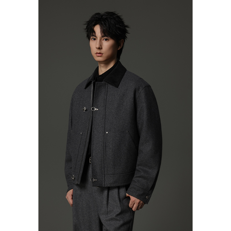w2x2025冬季 高级感休闲妮子外套潮 加棉加厚翻领羊毛呢夹克男短款
