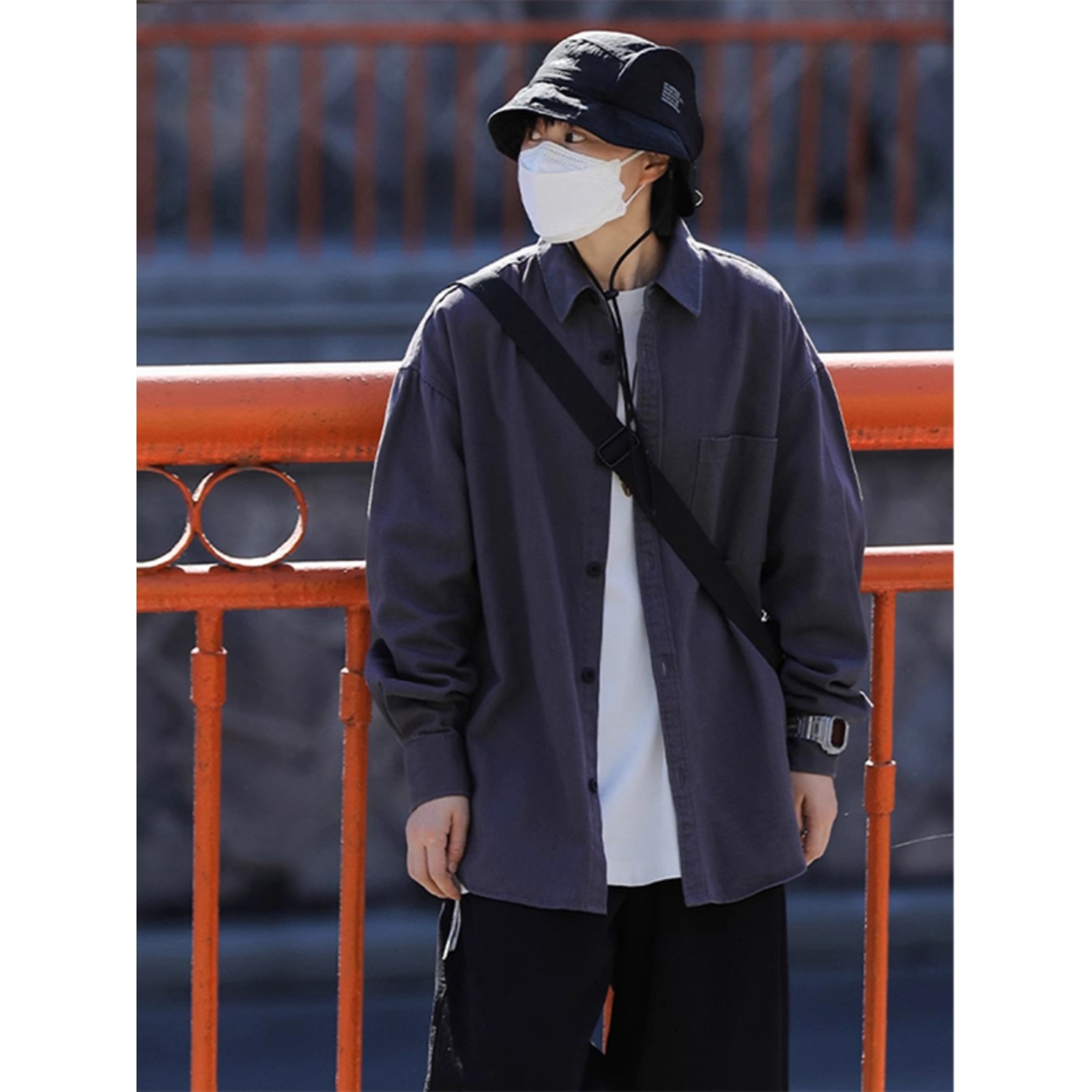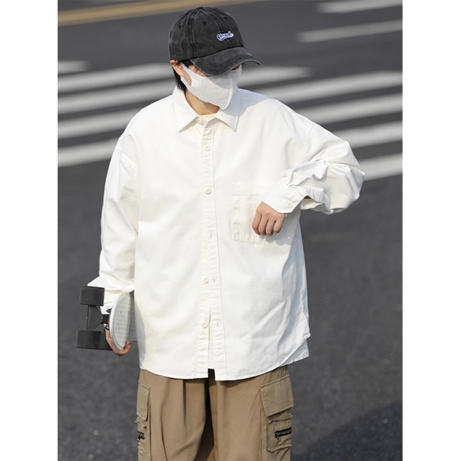 情侣重磅工装 特大码 男女秋季 衬衫 衬衣潮ins 300斤日系叠穿纯色长袖