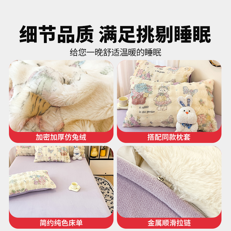 磨毛被套单件150x200x230单独加厚床单被罩非全棉纯棉床上三件套4