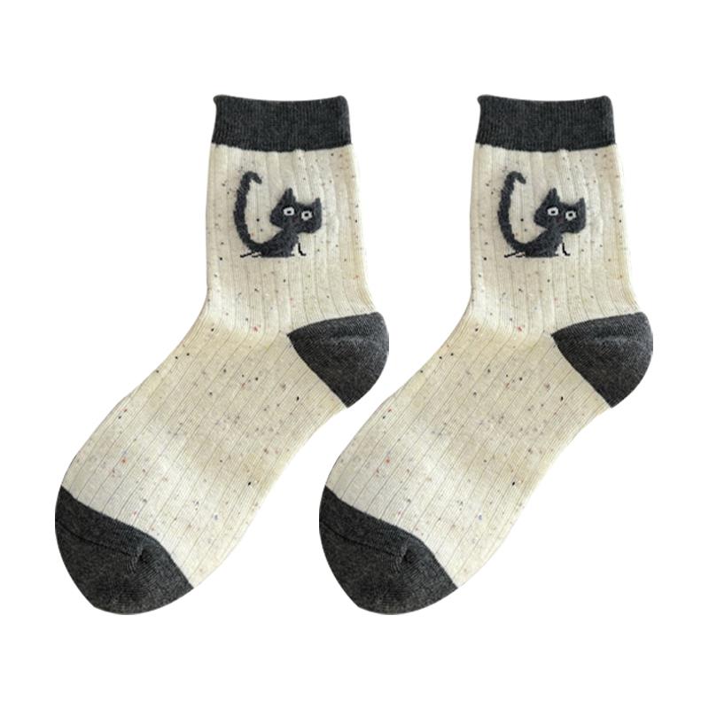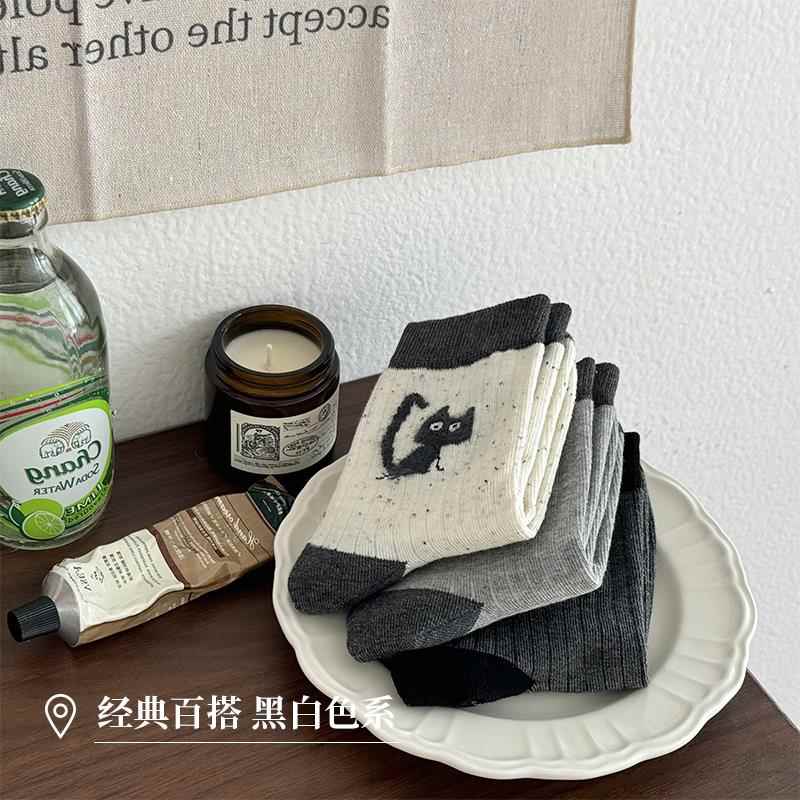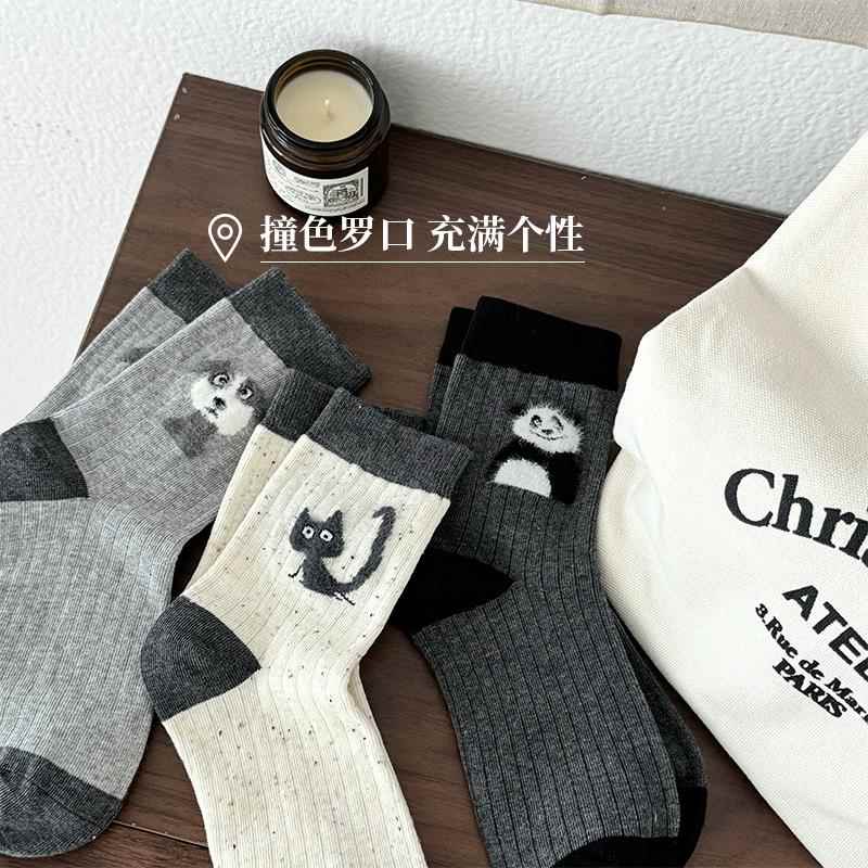 爆款 潮纯棉可爱日系中筒袜2025新款 卡通长袜 款 白色袜子女秋季