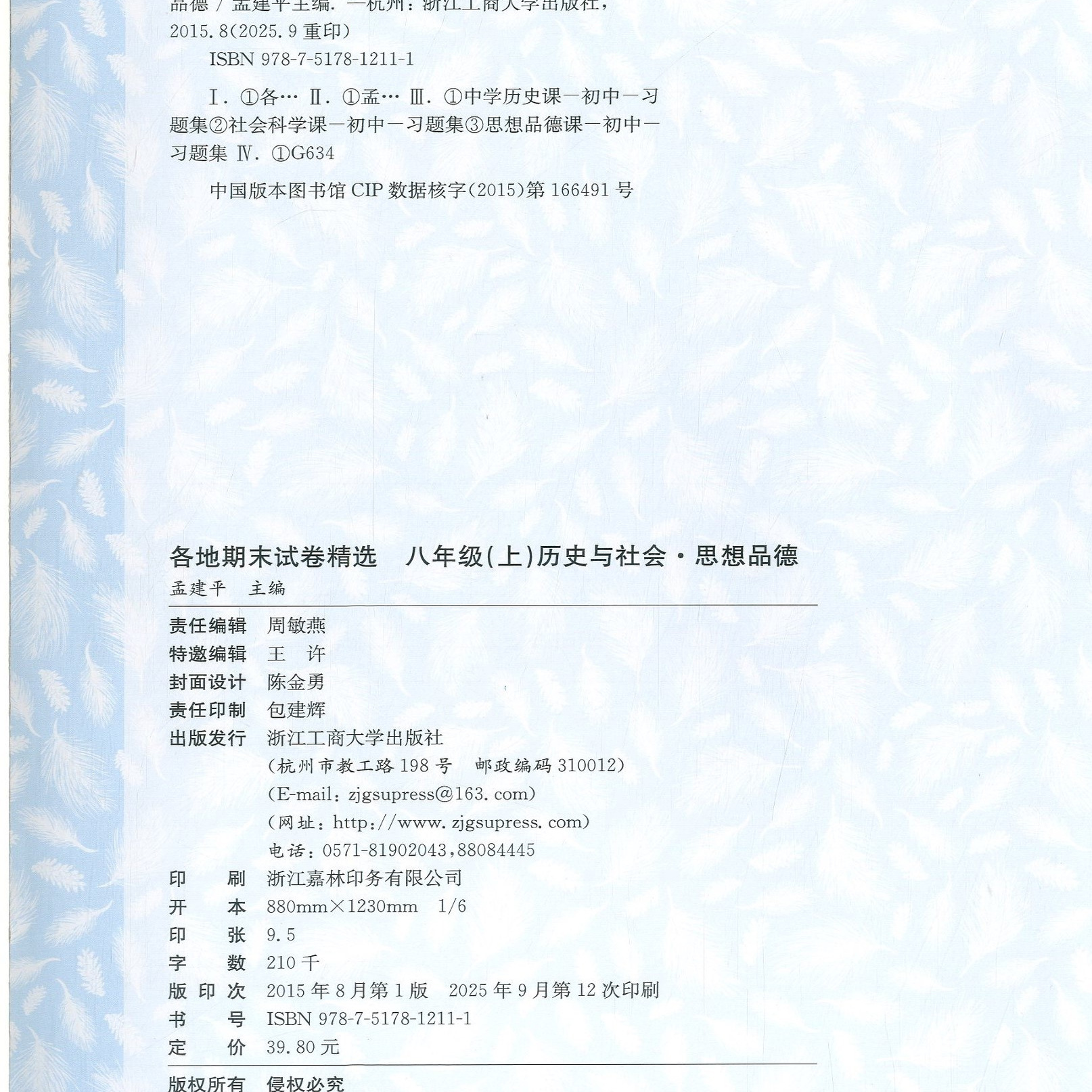 初二8年级上同步练习单元 教材 期中期末测试卷总复习资料 孟建平各地期末试卷精选八年级上册历史与社会道德与法治配人教版 2025新版
