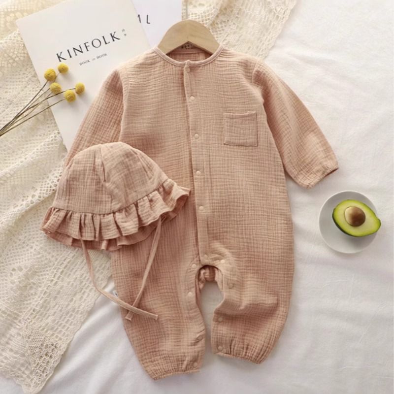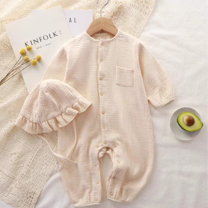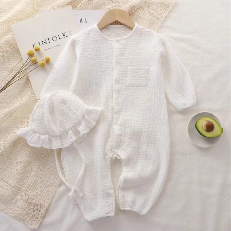睡衣 哈衣棉质纯色纱布连体衣宝宝夏季 婴儿春秋新款 爬服新生儿长款
