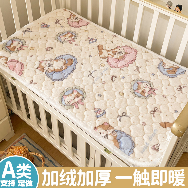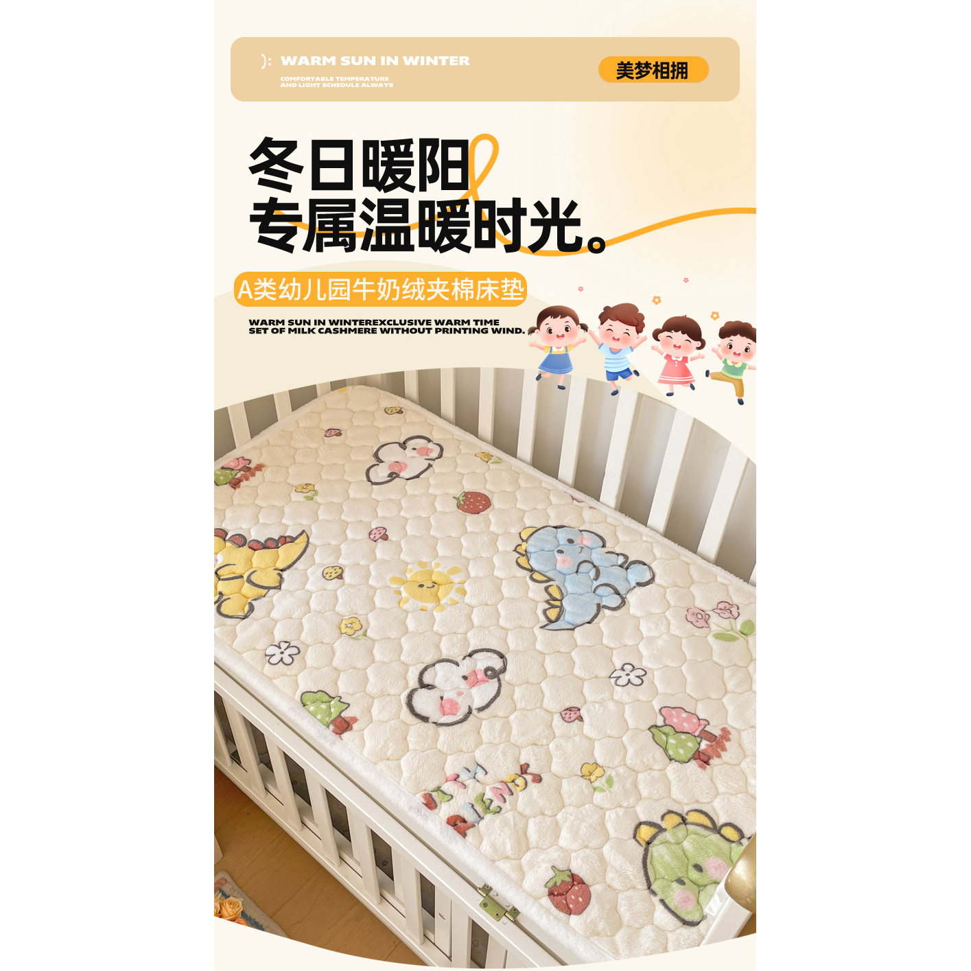 A类牛奶绒婴儿童床垫宝宝床单加绒拼接幼儿园午睡床褥防滑薄垫子