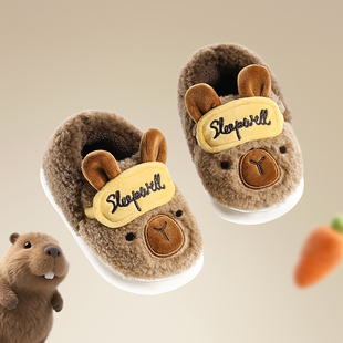 包跟男童家居拖鞋 卡通小熊宝宝棉鞋 加绒小女孩棉拖 新款 儿童棉拖鞋