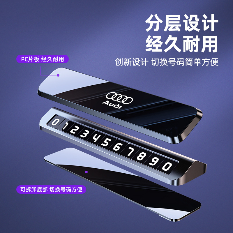 适用于奥迪车载停车牌A3A4LA6LQ3Q5LQ2L专用临时挪车电话牌号码 牌