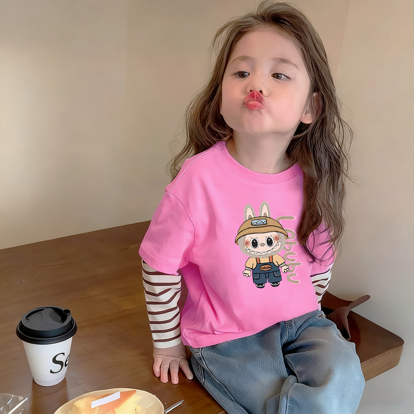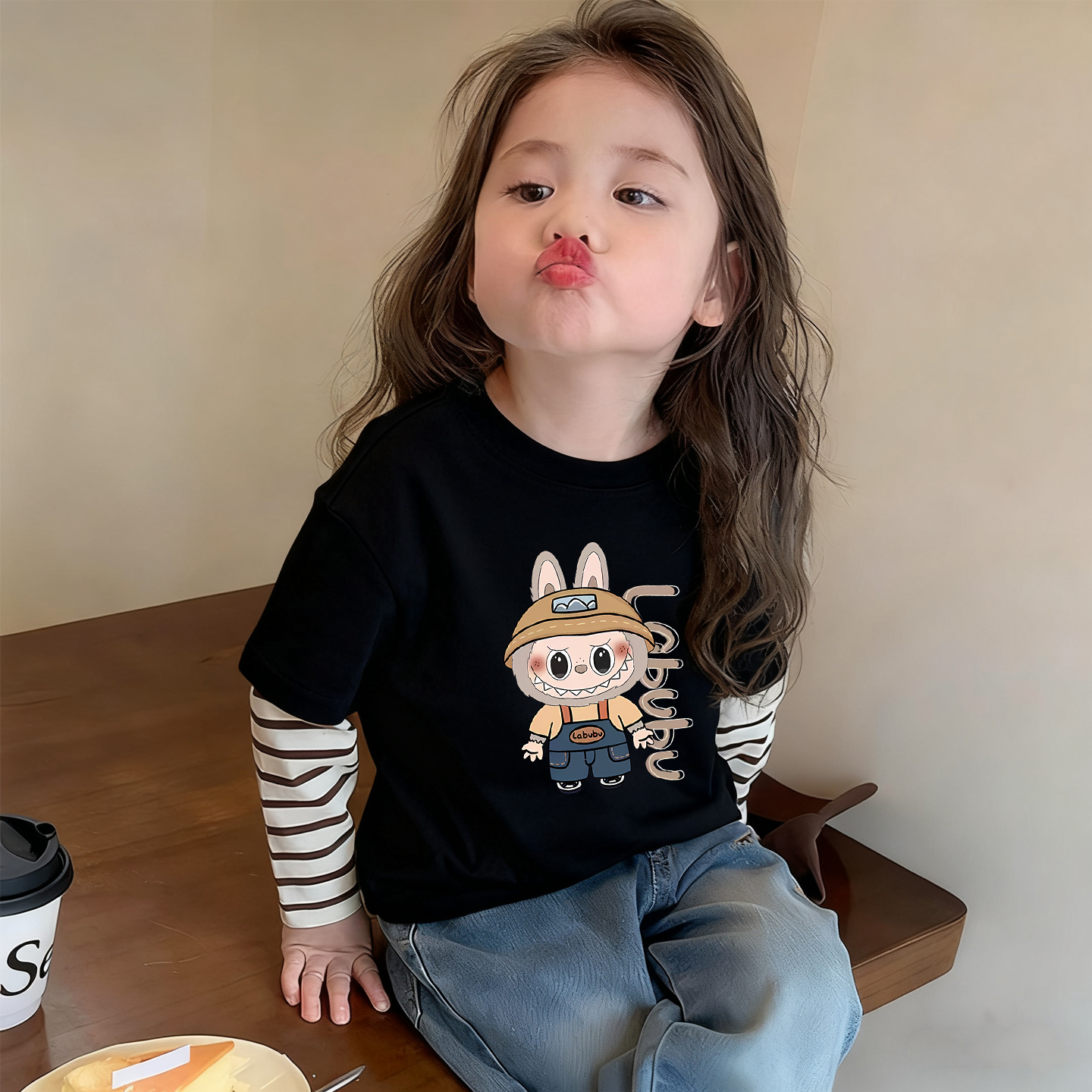 纯棉儿童洋气上衣拉布布打底条纹拼色 2025新款 女童长袖 t恤春秋款