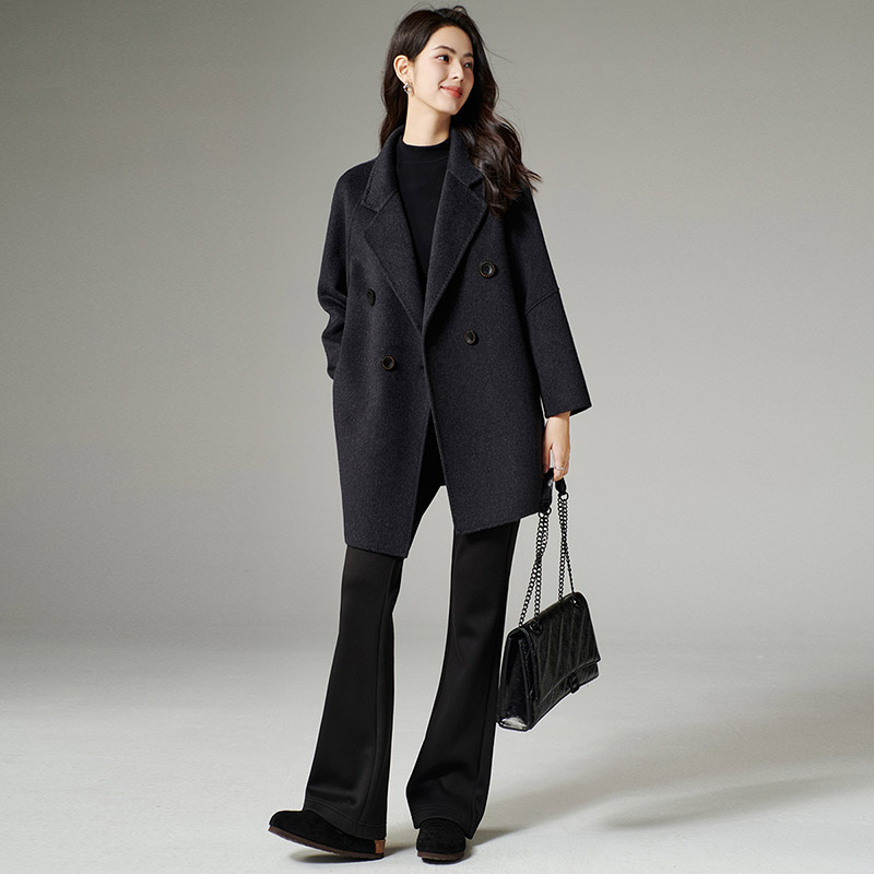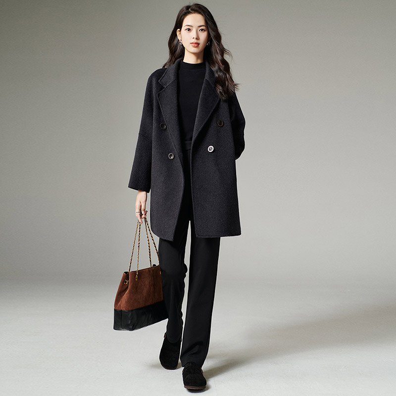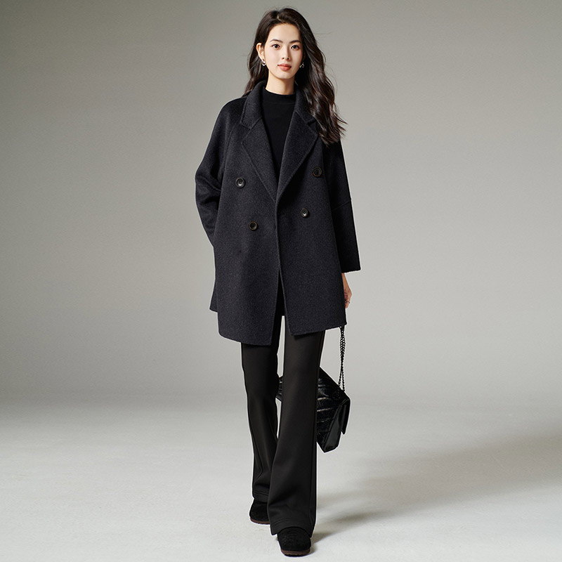 晚白2025年冬新款 大衣外套女 绵羊毛翻驳领上衣通勤气质百搭短款