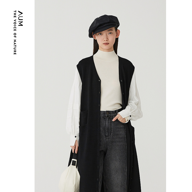 针织拼接法式 撞色长款 AUM噢姆冬季 赫本连衣裙 会员价2140元