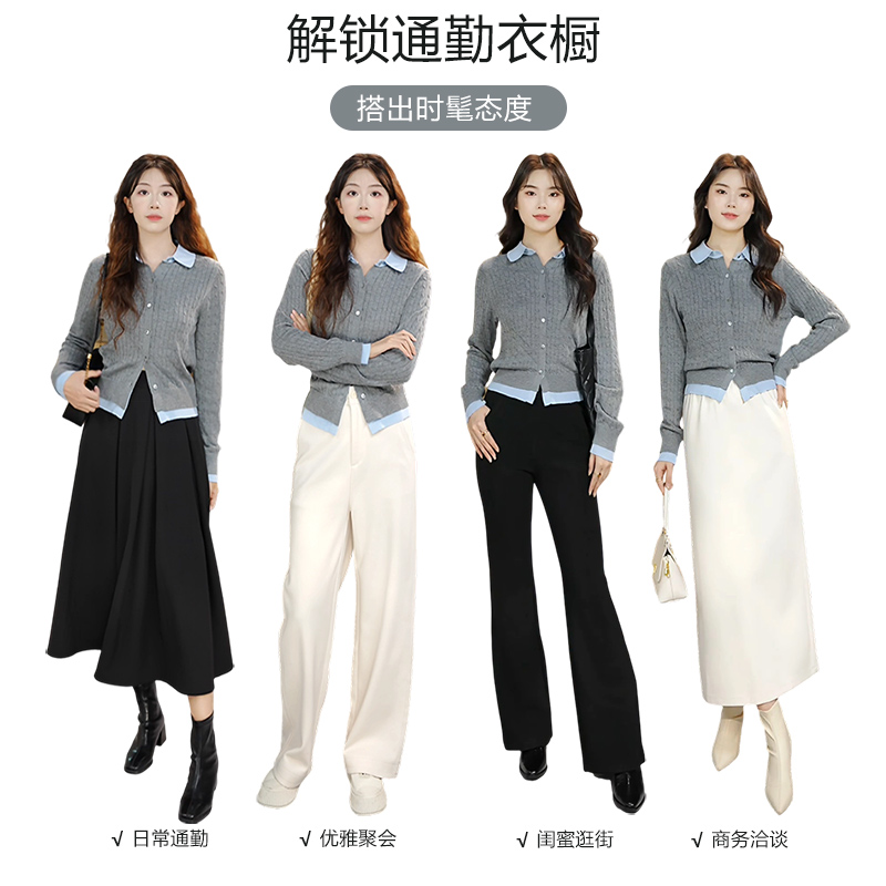 ONEBUYE 晚白 衣橱直播间 拼接假两件针织开衫 所有姐姐