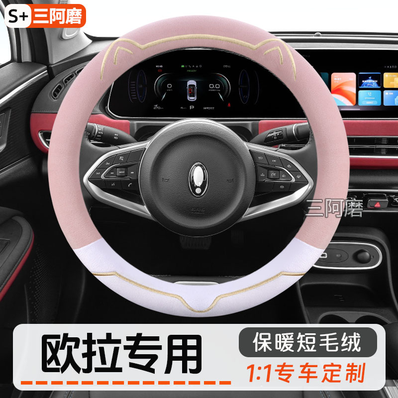 欧拉好猫方向盘套毛绒装 防滑把套 饰欧拉黑猫白猫芭蕾猫闪电猫冬季