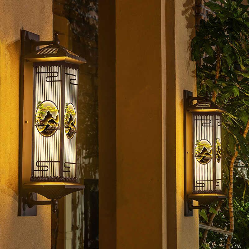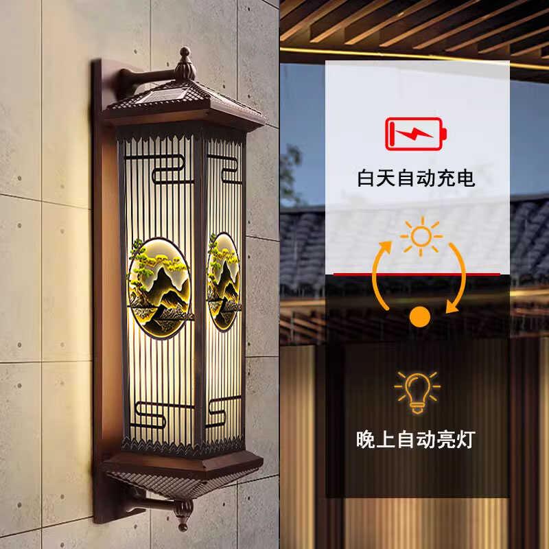 新中式 户外壁灯防水太阳能花园别墅大门柱子壁灯壁挂灯室外庭院灯
