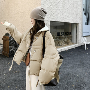 新款 羽绒服2025冬季 90绒防风保暖连帽面包服羽绒外套 短款 骆驼女装