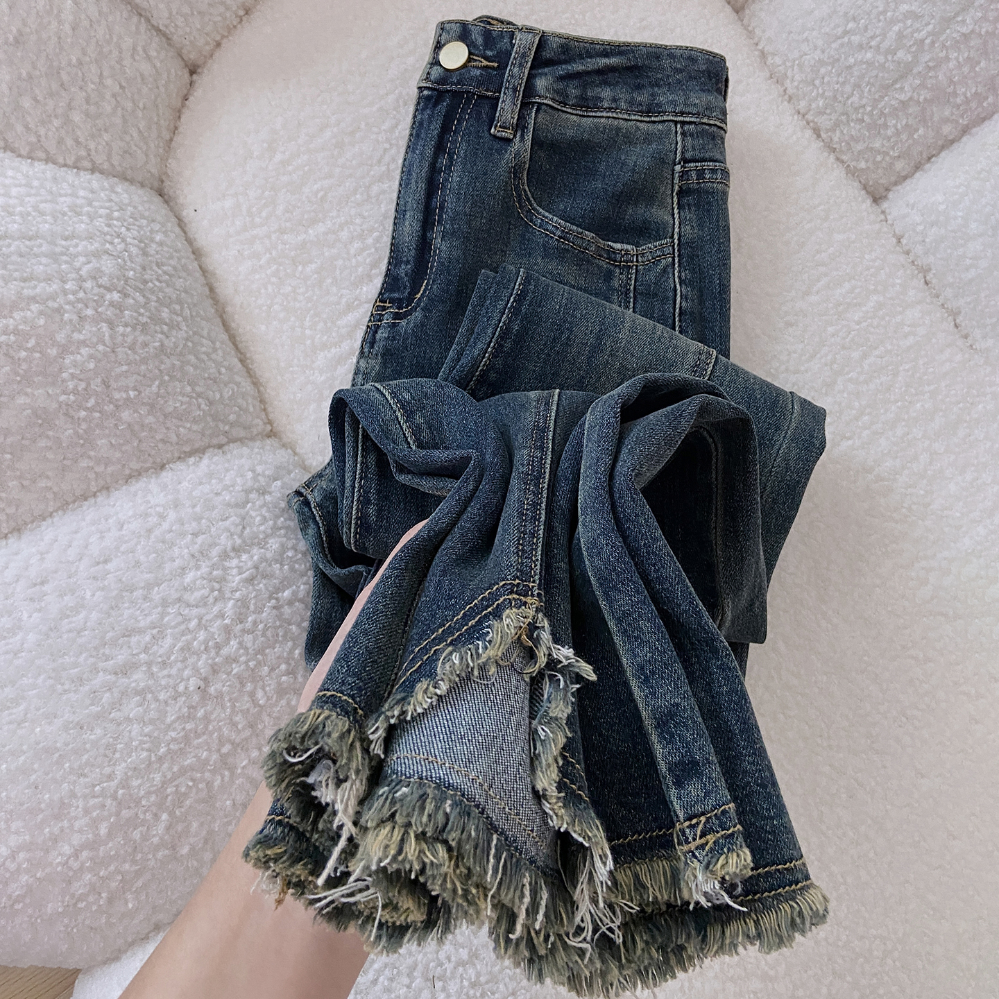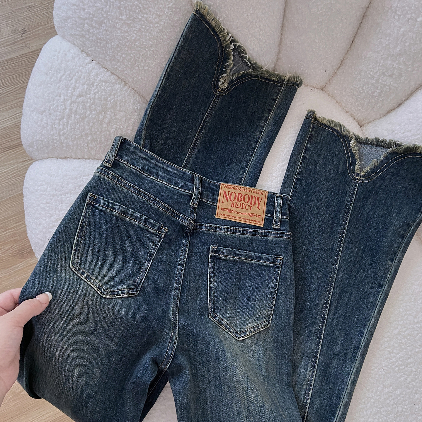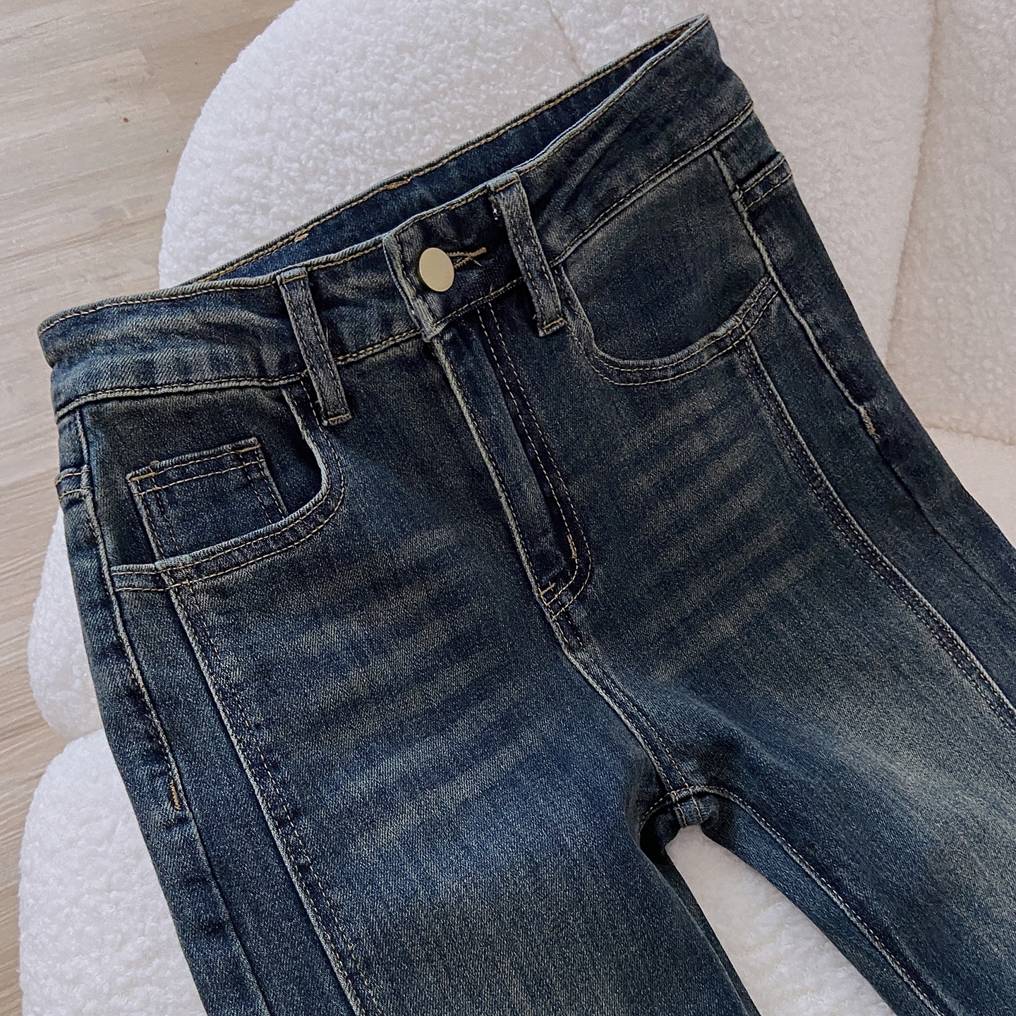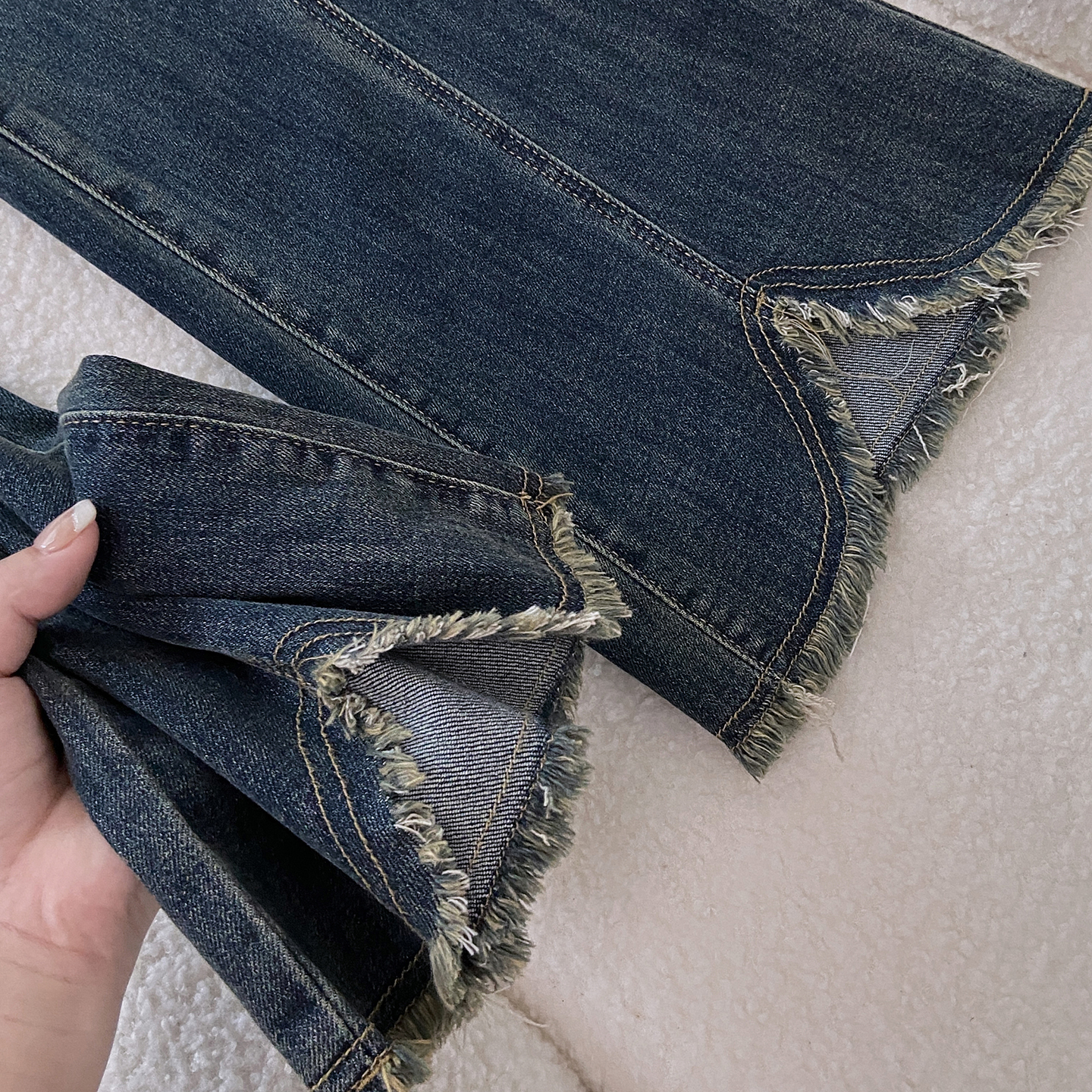 微喇牛仔裤 王家有鱼 新款 2025秋季 中高腰不贴腿辣妹女 古早蓝灰