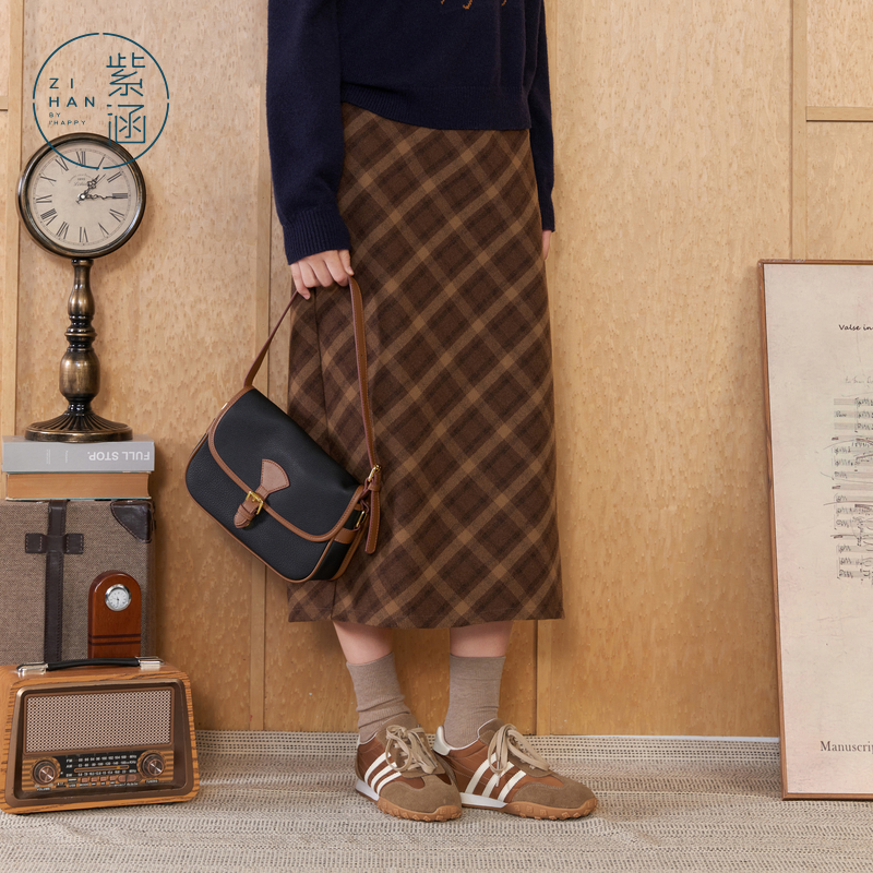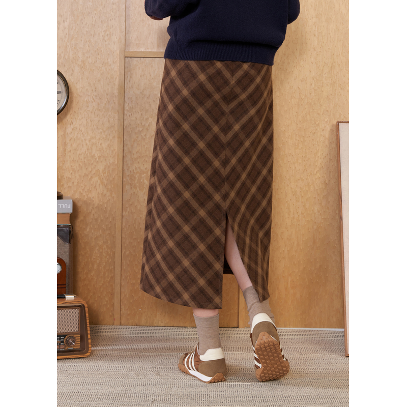复古格纹不规则a字伞裙显瘦半身裙女冬季 RUISHI芮时 绒冬格调