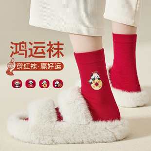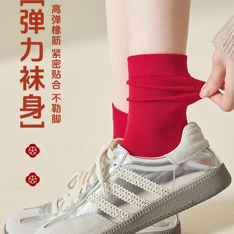 雅鹿大红色袜子女本命年中筒秋冬季 多规格 喜庆结婚可爱长筒袜