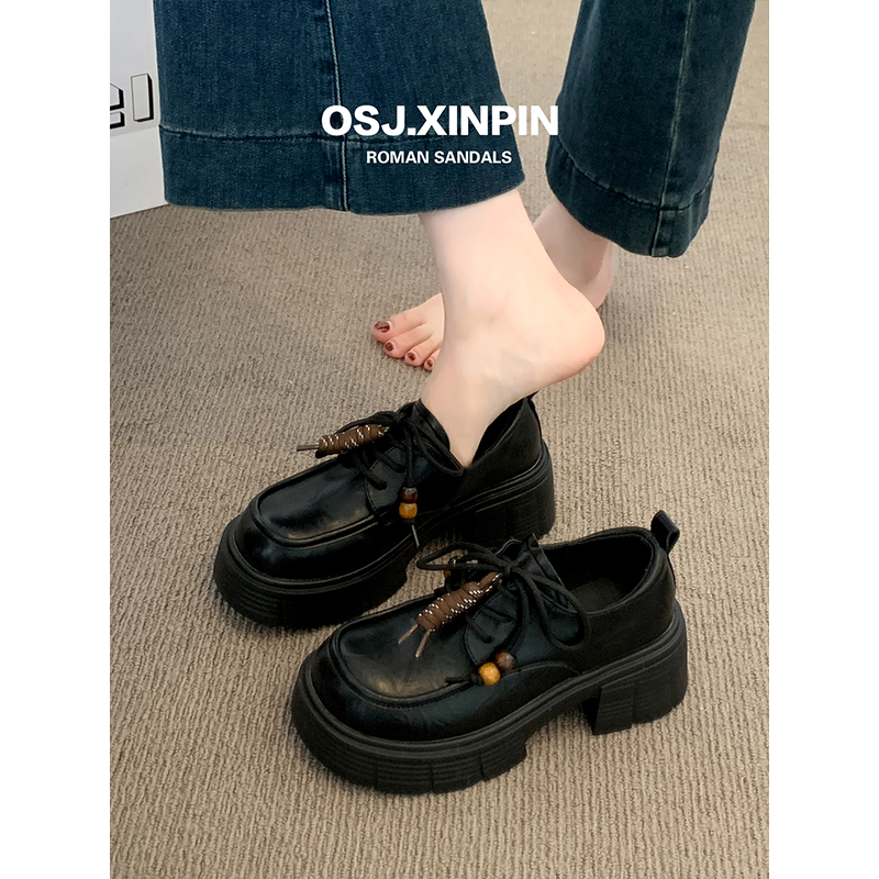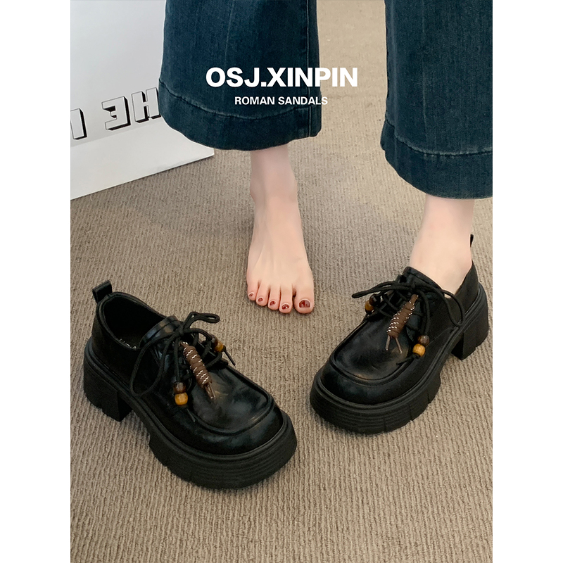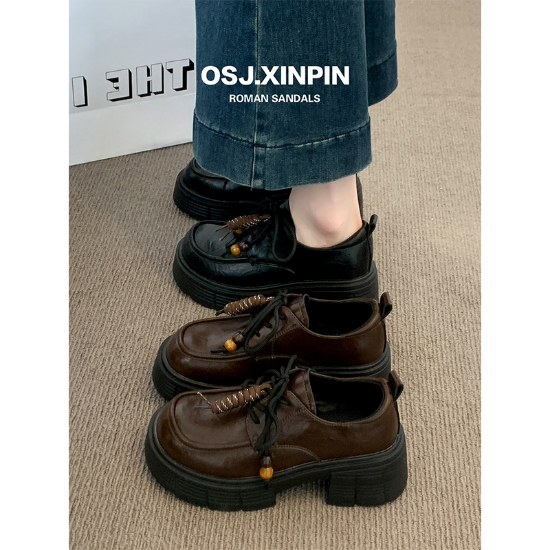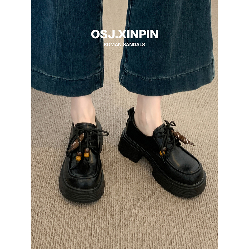 女2025新款 软底不累脚英伦小皮鞋 秋季 子百搭黑色单鞋 鞋 厚底乐福鞋