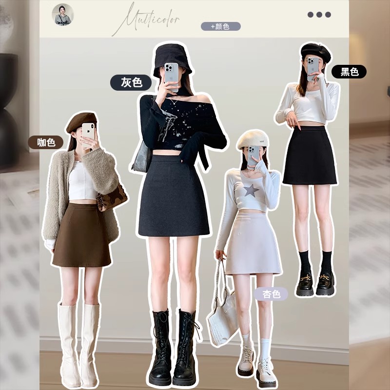 高腰显瘦a字裙百褶裙短裙 新款 omont蛋挞家 bella灰色半身裙子秋季
