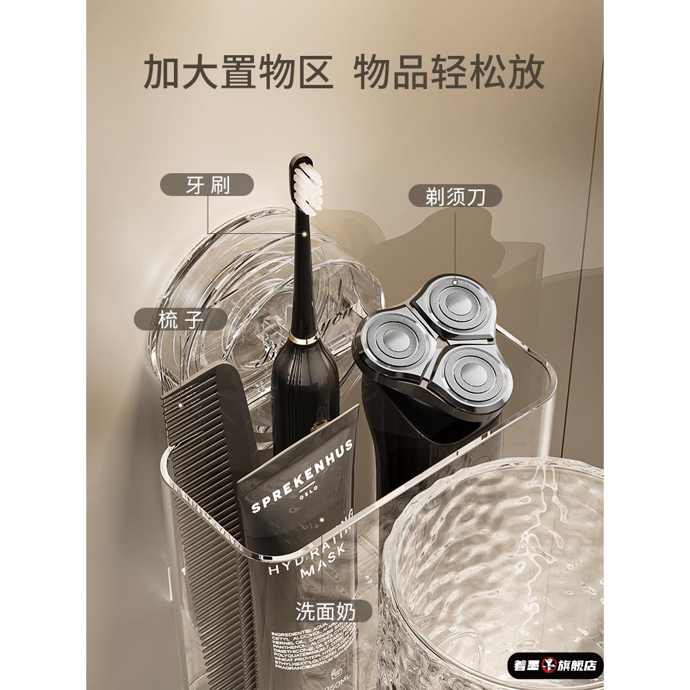 牙刷漱口杯置物架吸盘牙杯壁挂式 免打孔电动收纳架子刷牙杯高颜值