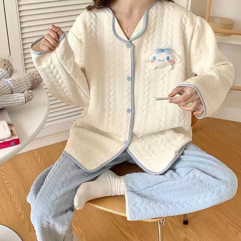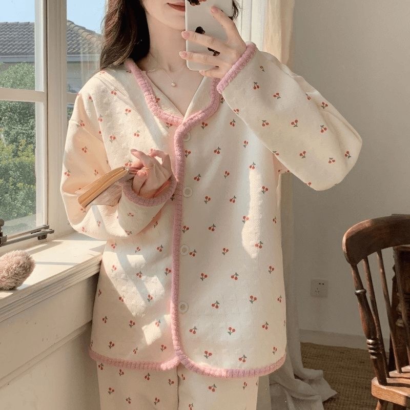 家居服套装 冬季 睡衣女加厚加绒珊瑚绒三层夹棉法兰绒保暖秋冬新款