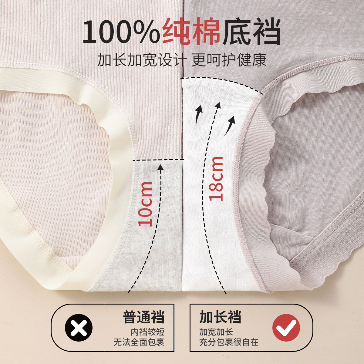 3条装 六月玫瑰 女不夹臀 高腰收腹小肚子内裤 100%纯棉加长裆