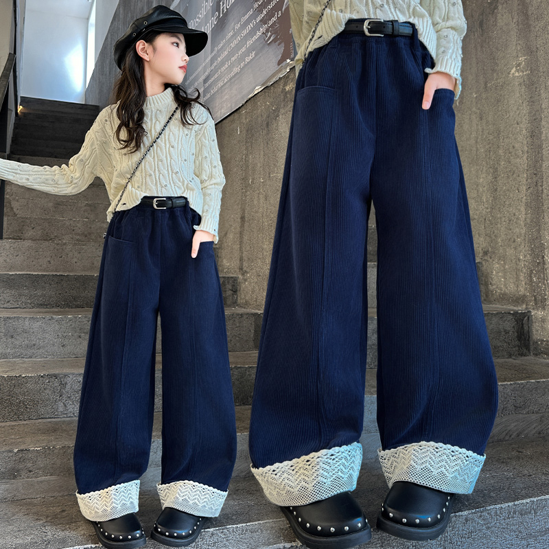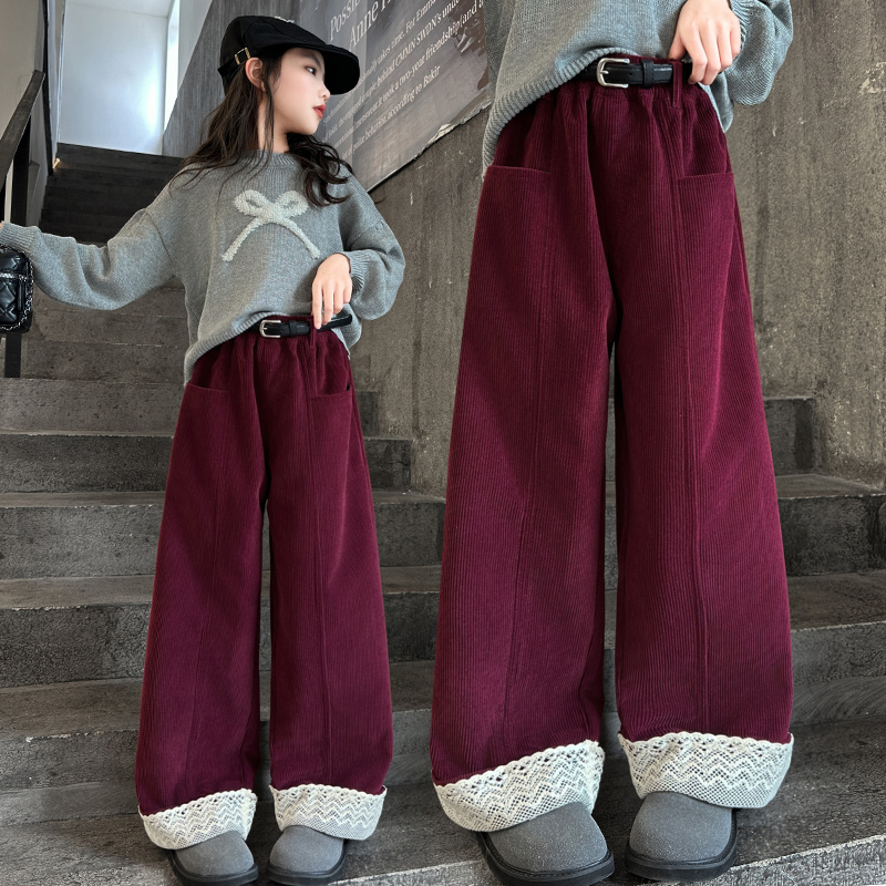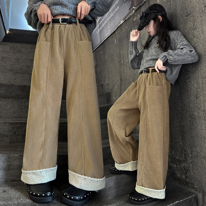 潮酷 灯芯绒洋气韩系儿童直筒长裤 女童裤 子加绒加厚秋冬2025新款