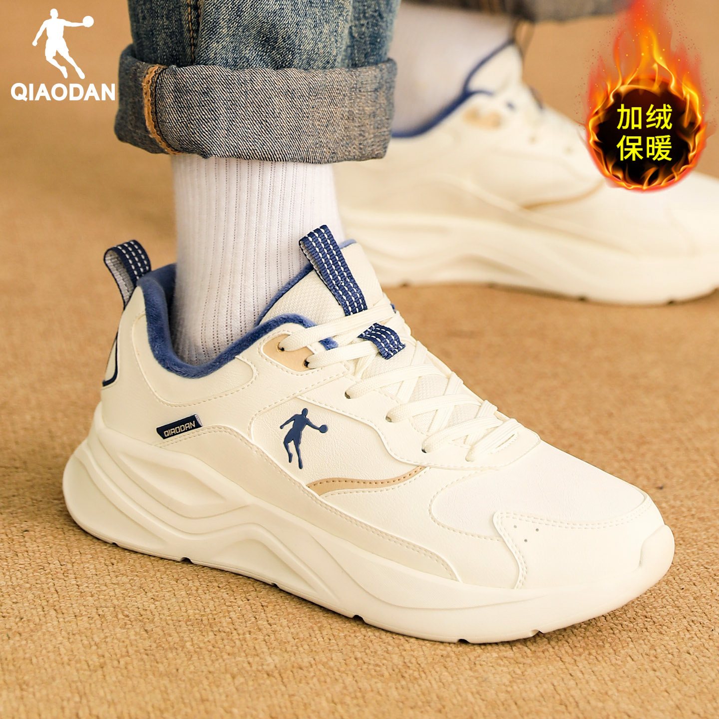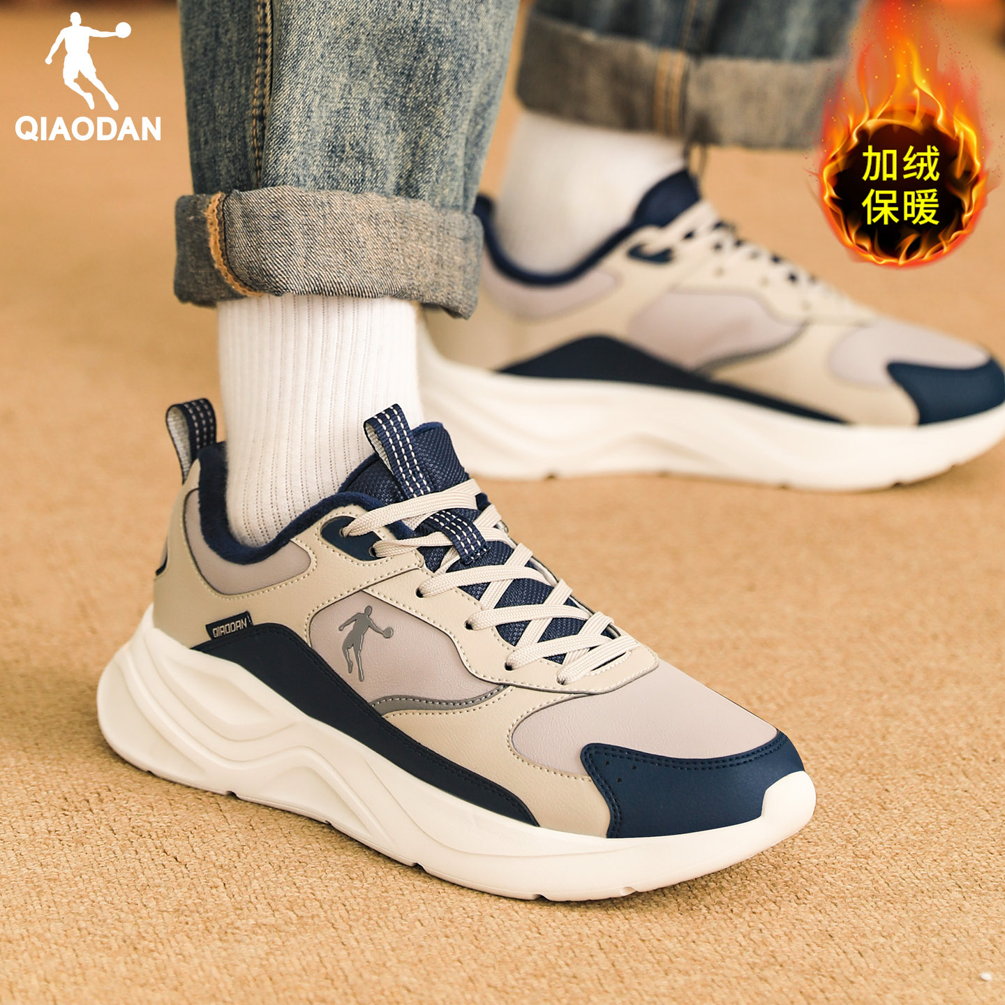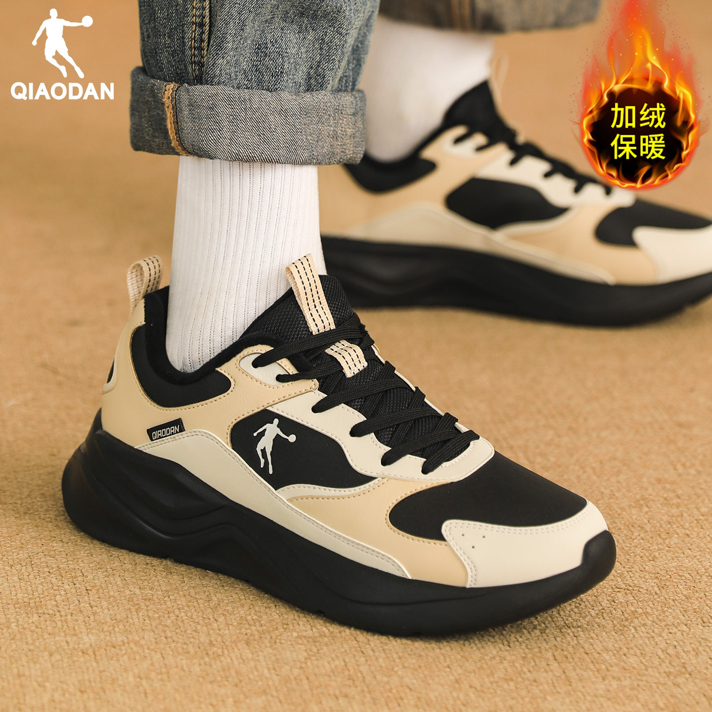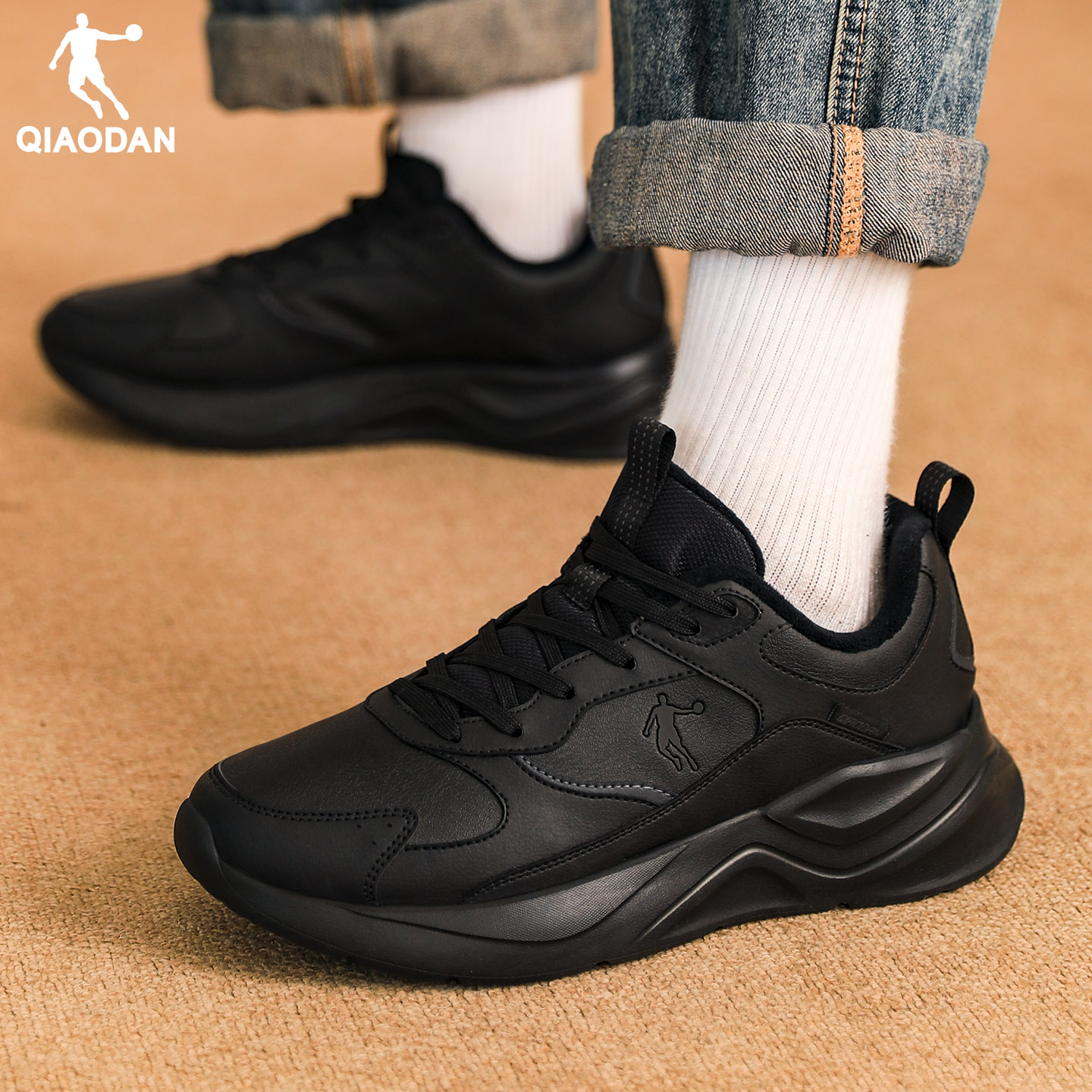 2025新款 冬季 保暖皮面防水跑步鞋 正品 子 乔丹加绒运动鞋 二棉鞋 男鞋