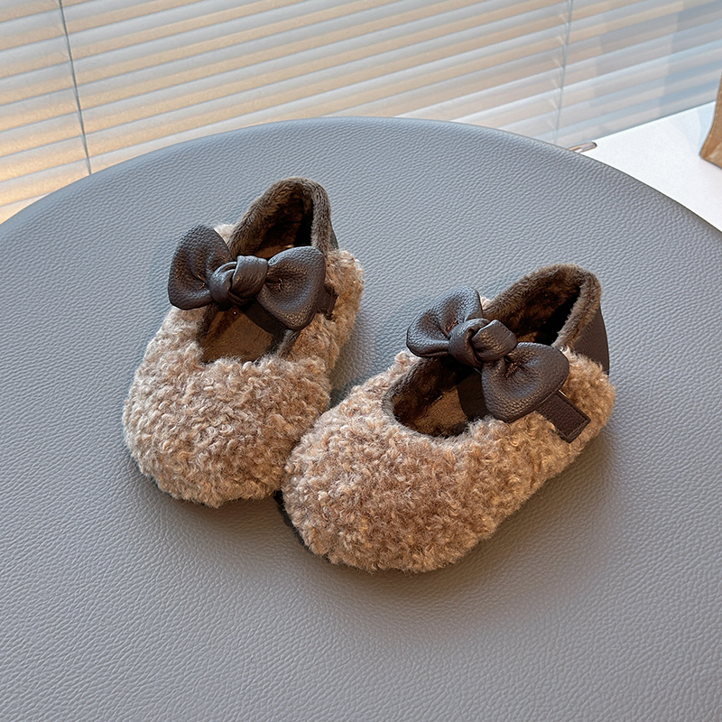 宝宝蝴蝶结公主豆豆鞋 加绒外穿中小儿童棉鞋 2025秋冬款 女童毛毛鞋