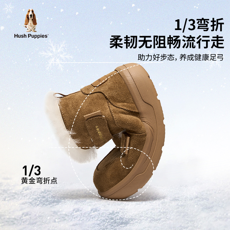 大童加绒保暖大棉鞋 儿童毛毛鞋 防滑棉靴 儿童雪地靴冬季 暇步士童鞋