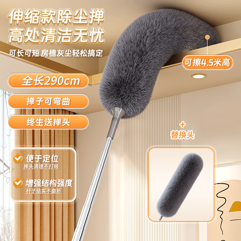 鸡毛掸子静电除尘扫灰家用伸缩杆打扫灰尘天花板高处缝隙清洁好物