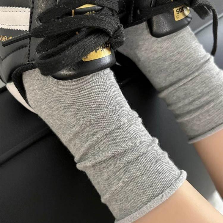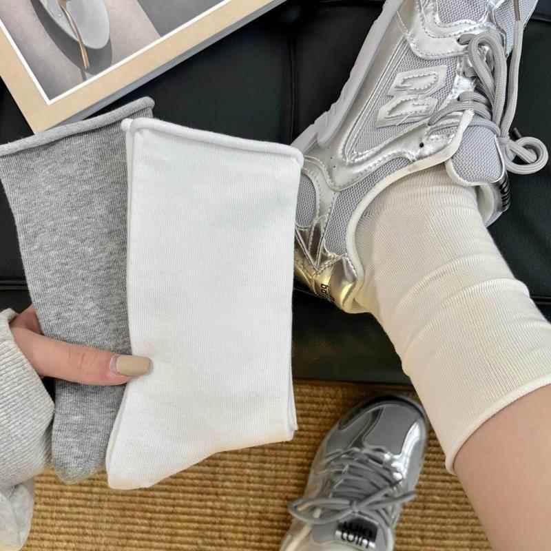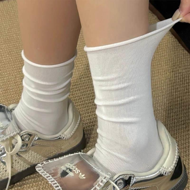 白色卷边袜子女配勃肯鞋 日系堆堆袜秋冬长袜 中筒袜潮冬秋款