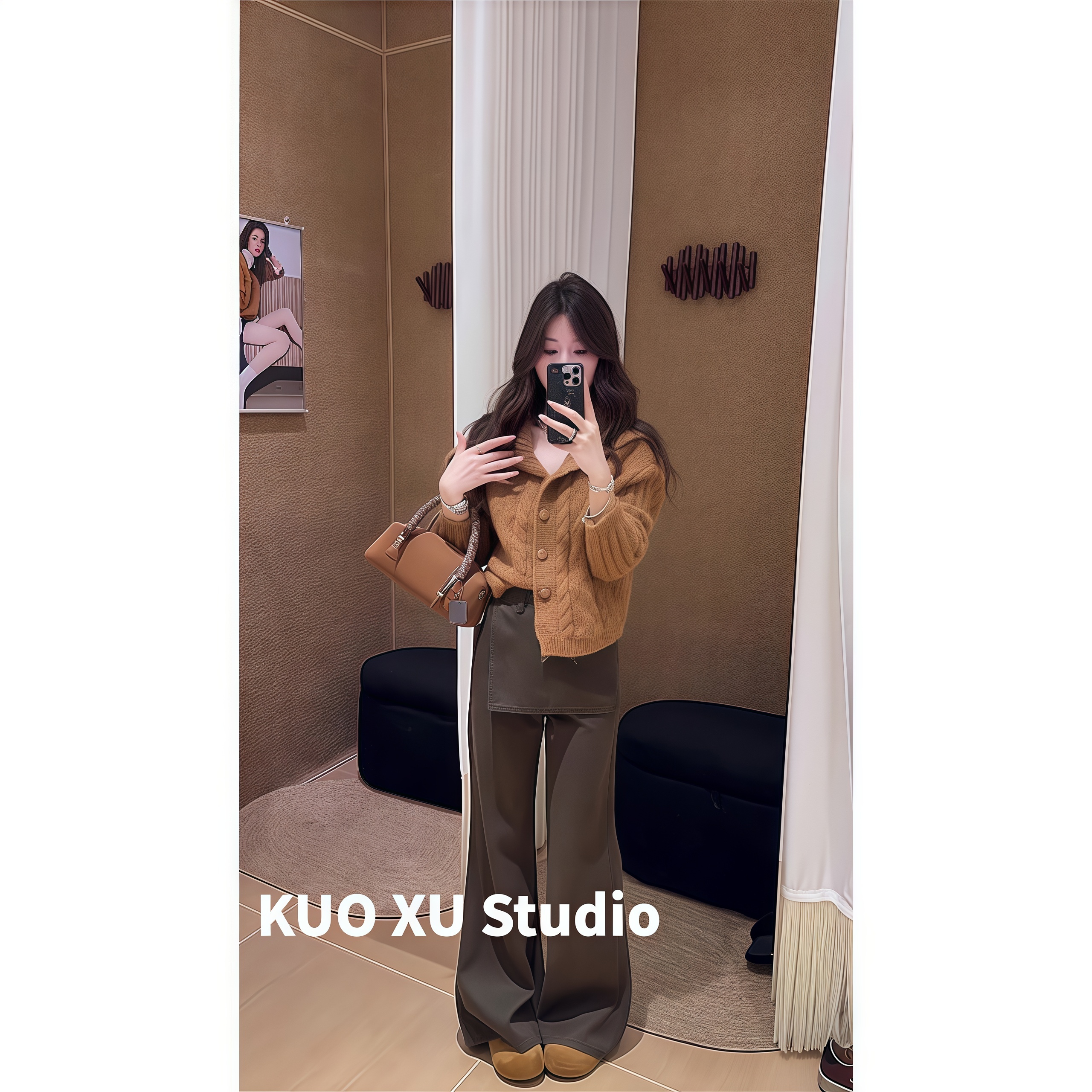 女 套装 早秋穿搭复古气质翻领宽松针织衫 毛衣设计感高腰宽松阔腿裤