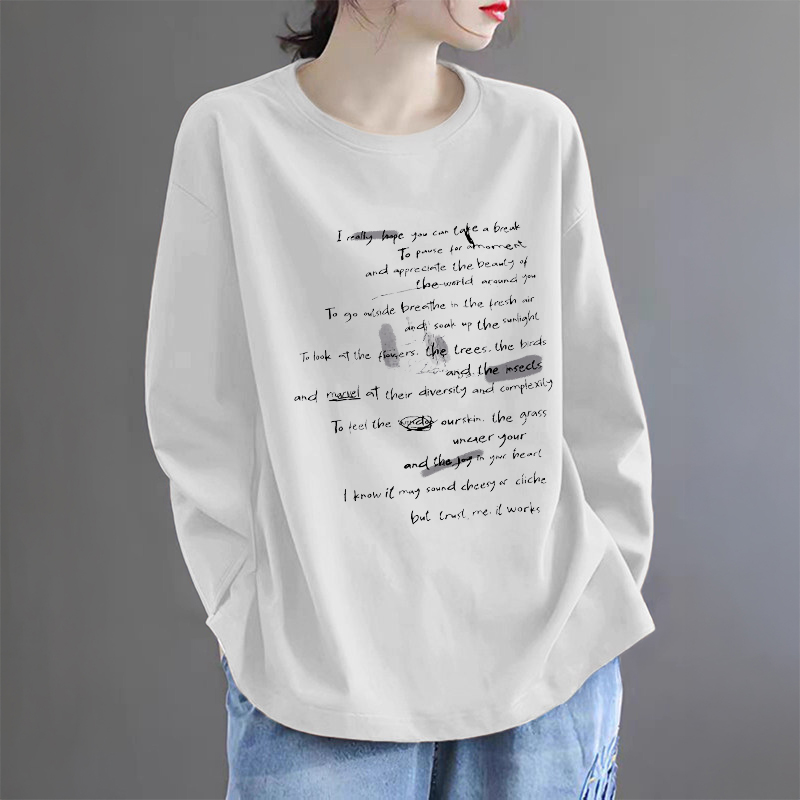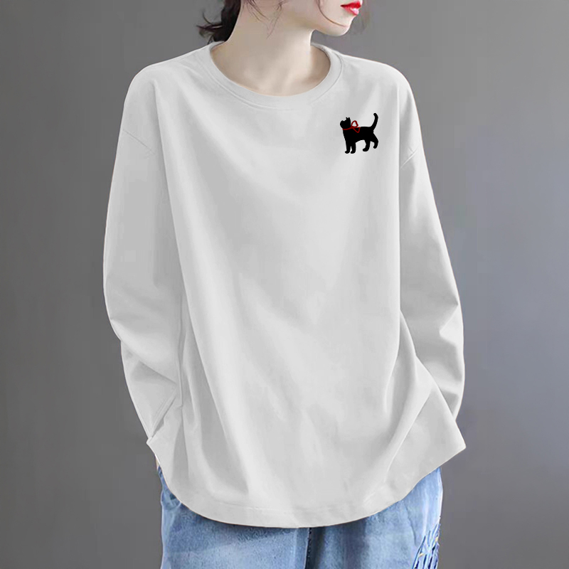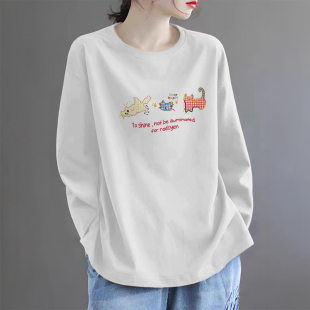 早秋chic上衣女胖mm显瘦遮肉 长袖 纯棉t恤女白色打底衫 女内搭薄款