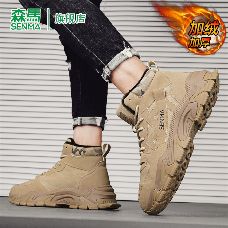 男款 工作劳保工装 2025冬季 加绒加厚保暖棉鞋 马丁靴 新款 森马高帮鞋