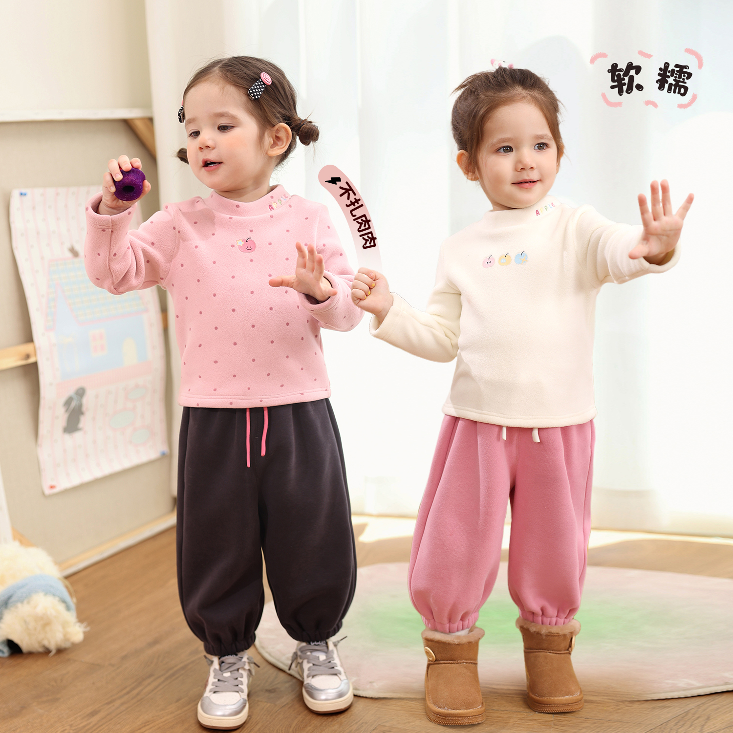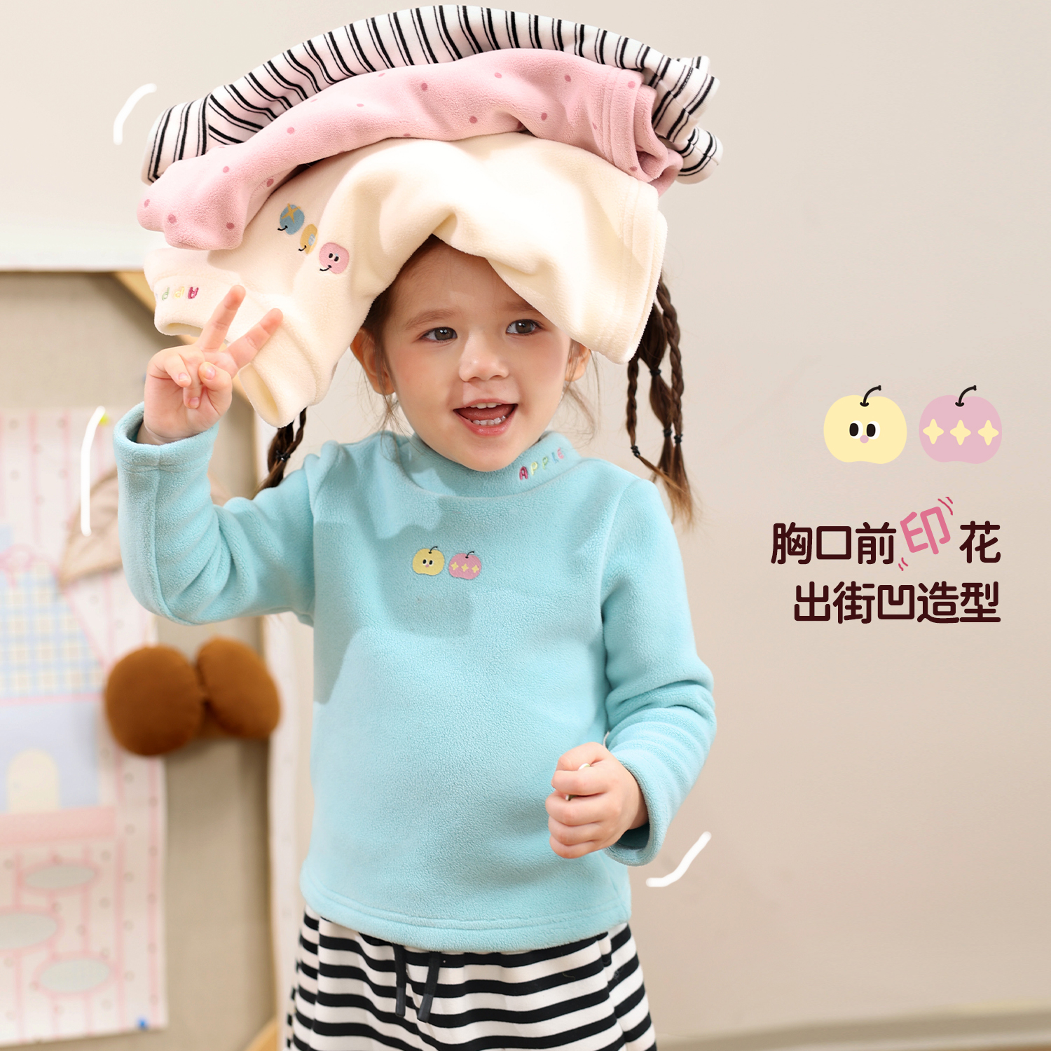 保暖好看婴儿长袖 NORNOR童装 秋冬季 2025新款 t恤 女宝宝薄绒打底衫