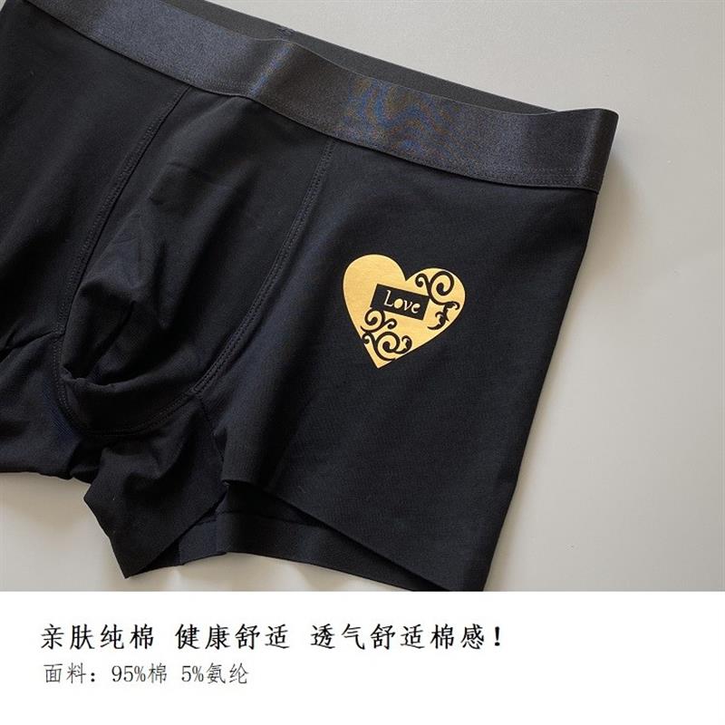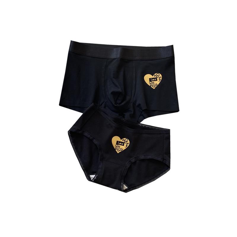 礼盒装 内裤 黑色爱心纯棉舒适透气中腰情侣款 好货浪漫情侣内裤