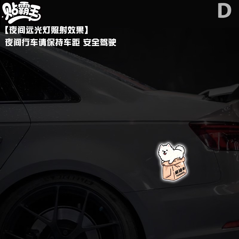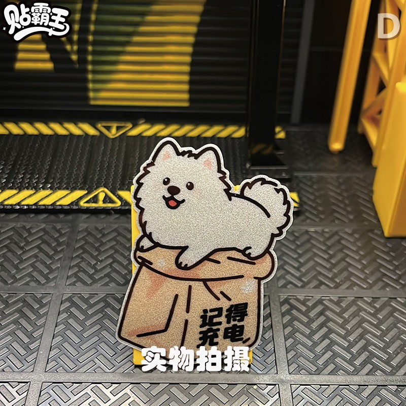 卡通创意萨摩耶小狗纸袋油箱盖9598充电摩托汽车玻璃窗反光贴