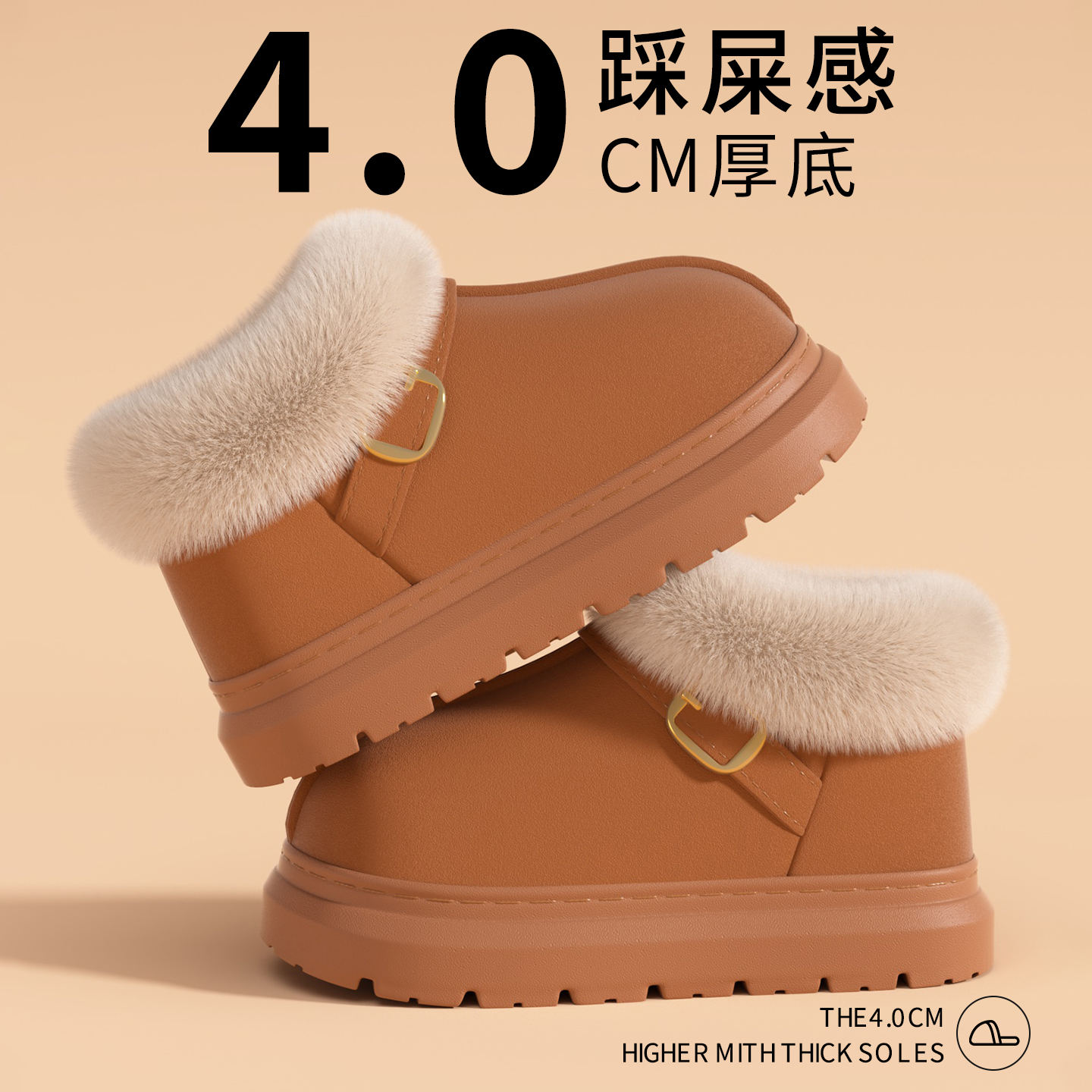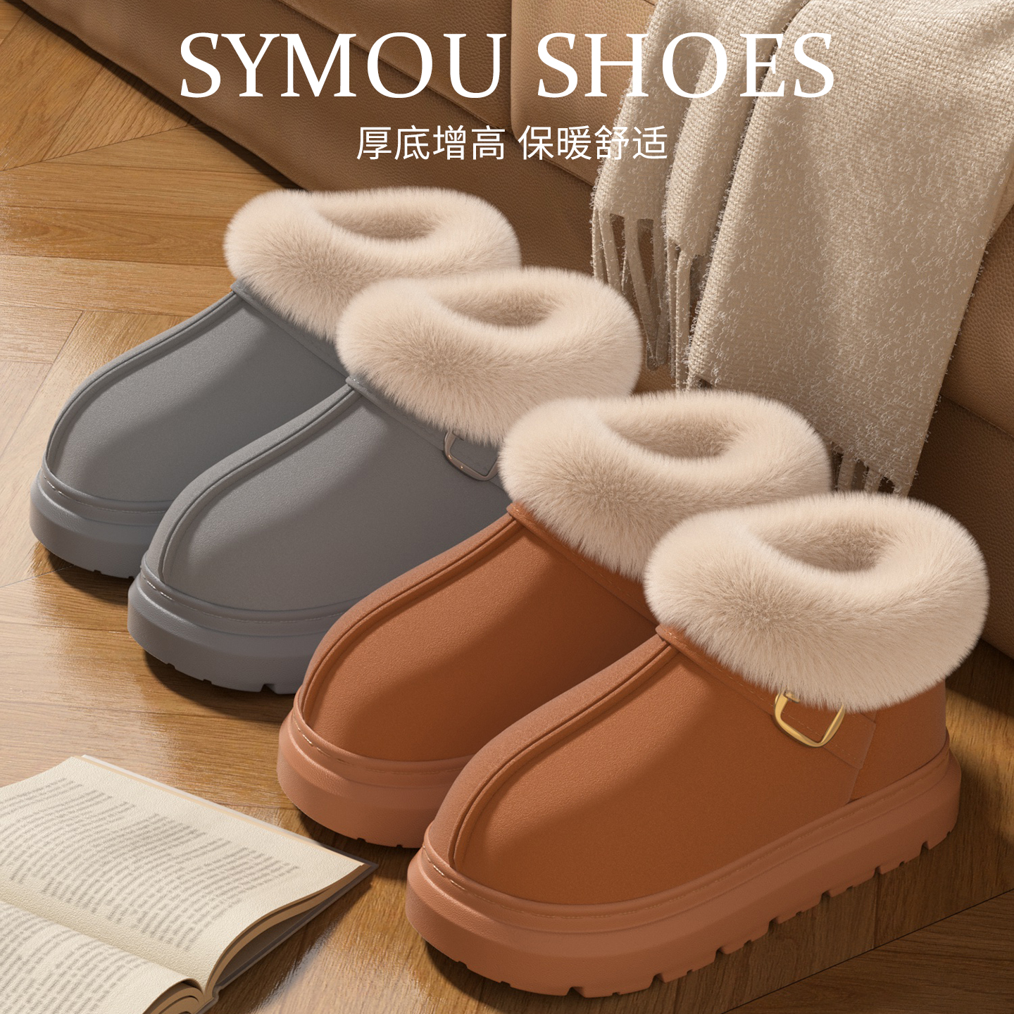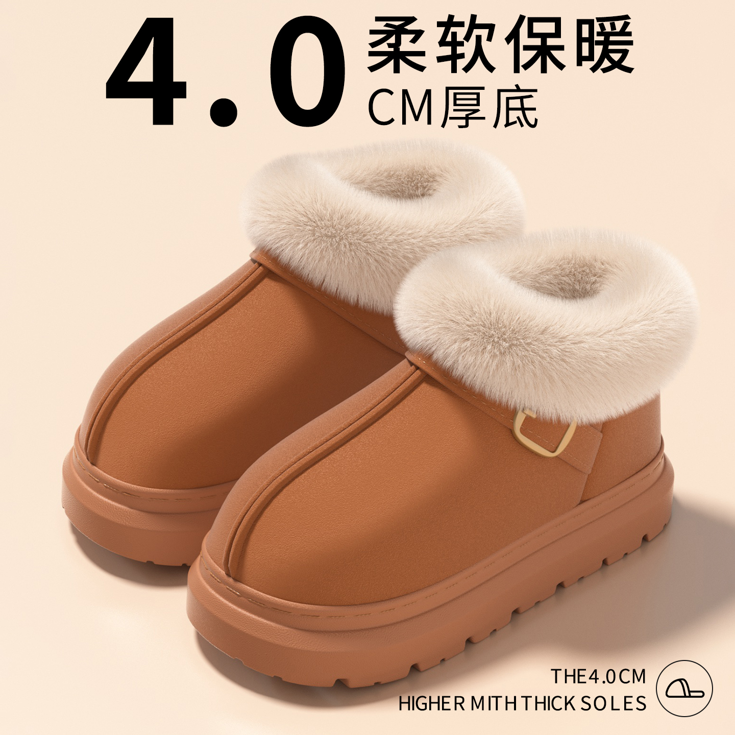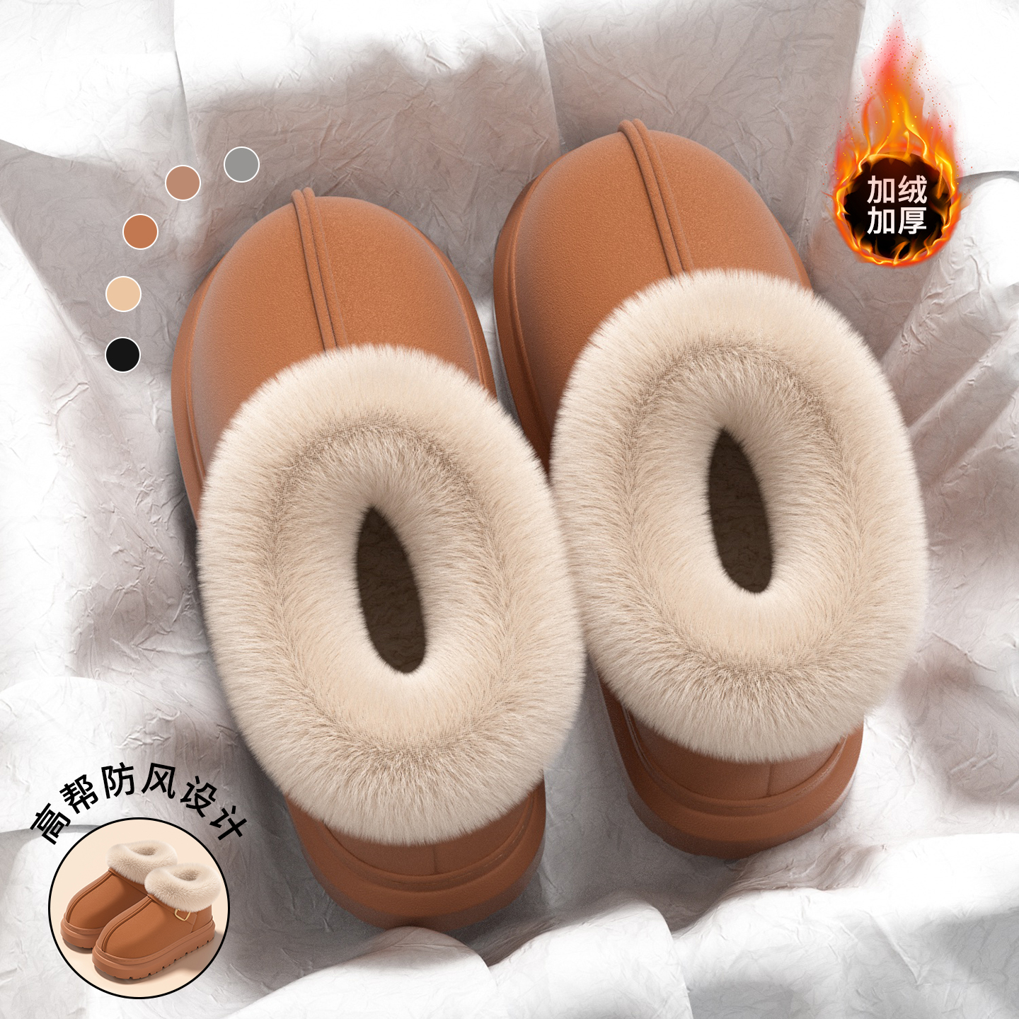 室内居家高帮厚底加绒外穿雪地棉鞋 新款 女2025冬季 防水包跟棉拖鞋