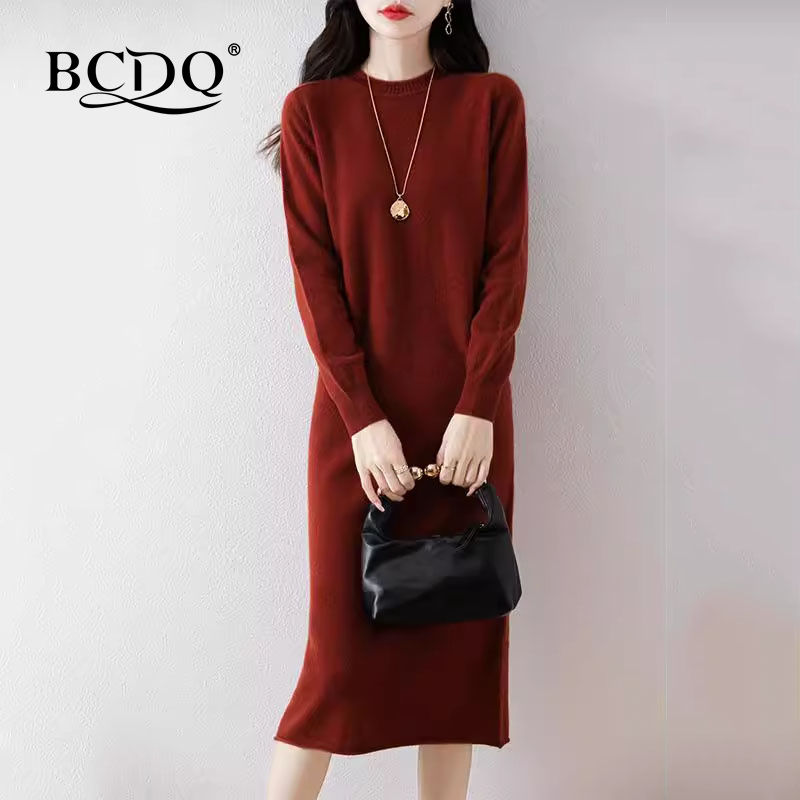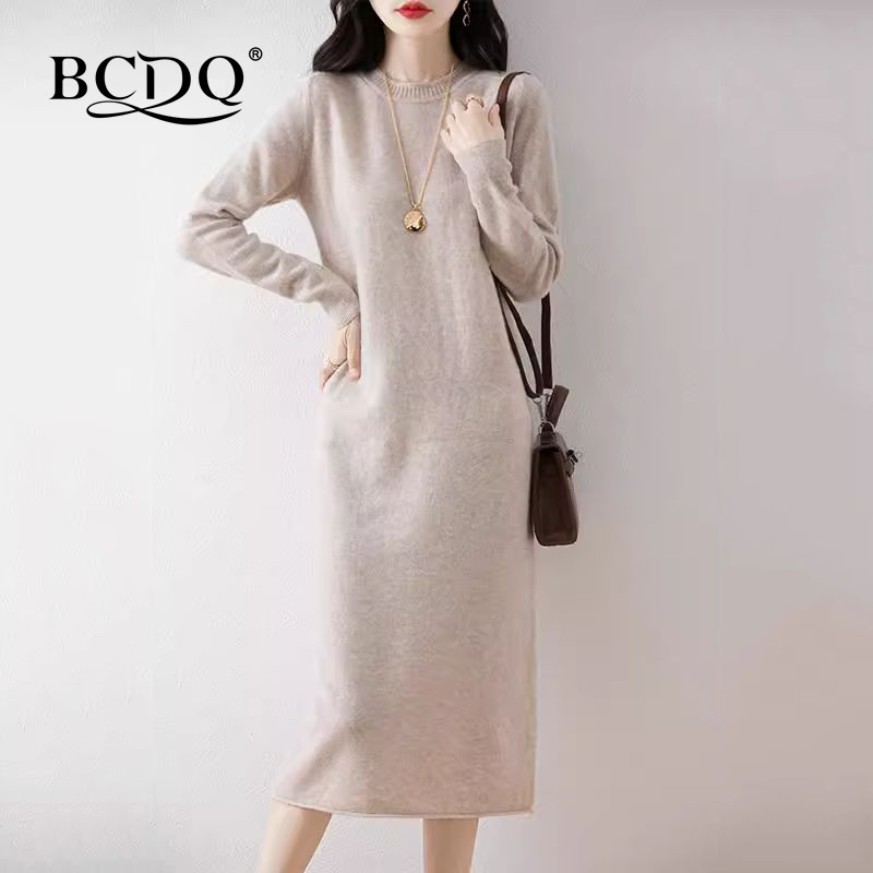 纯羊毛宽松连衣裙女2025秋冬新款 包臀裙圆领打底裙 百搭气质修身