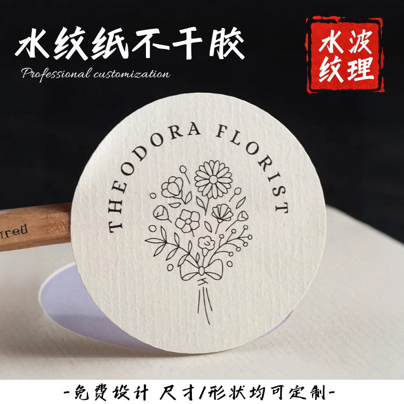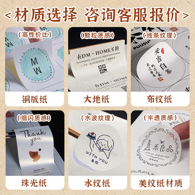 不干胶贴纸定制布纹特种纸包装 盒子封口广告背胶自粘logo标签设计
