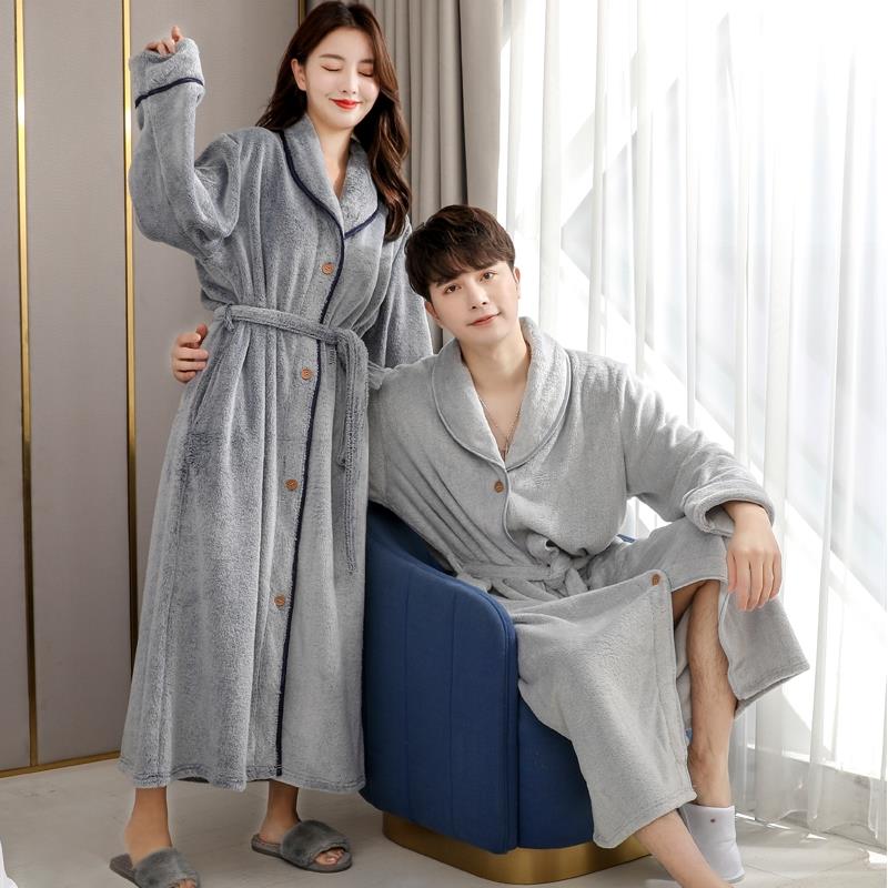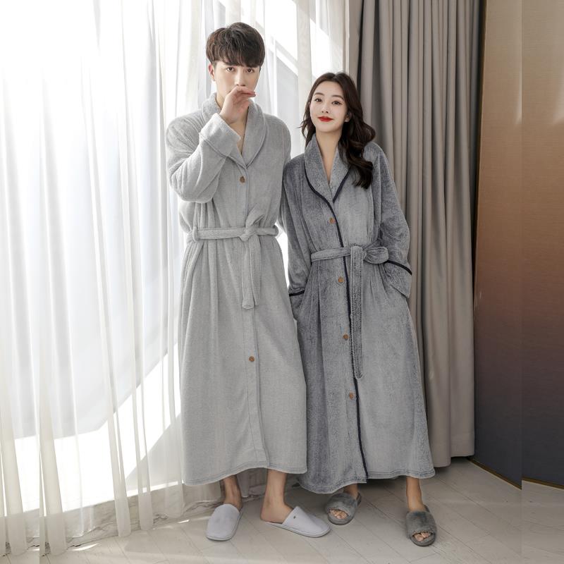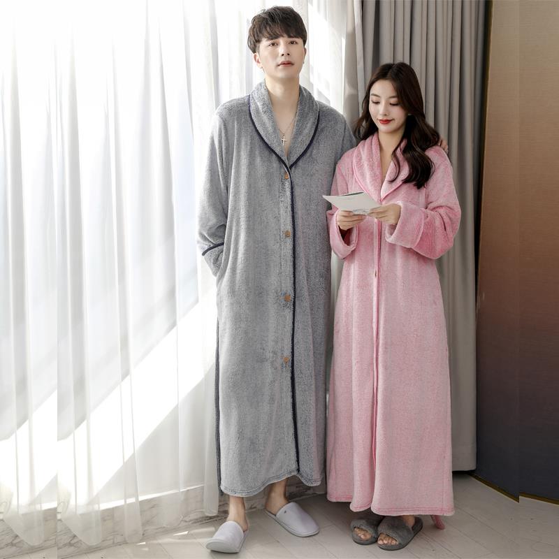 扣1009c 睡裙加厚纽扣睡袍男秋连体睡衣加绒长款 秋冬冬季 保暖男士
