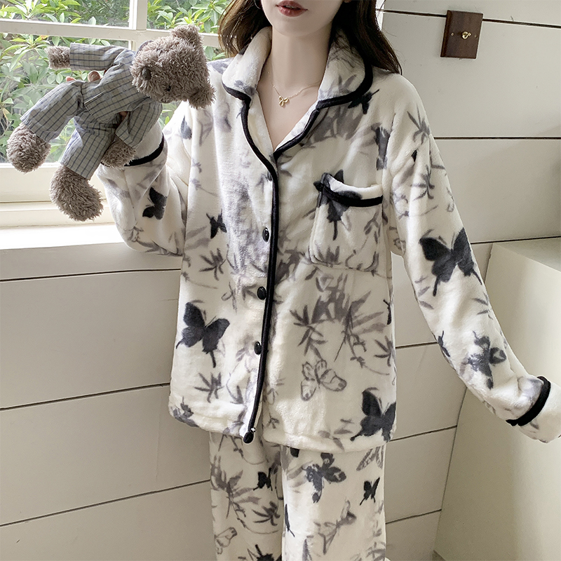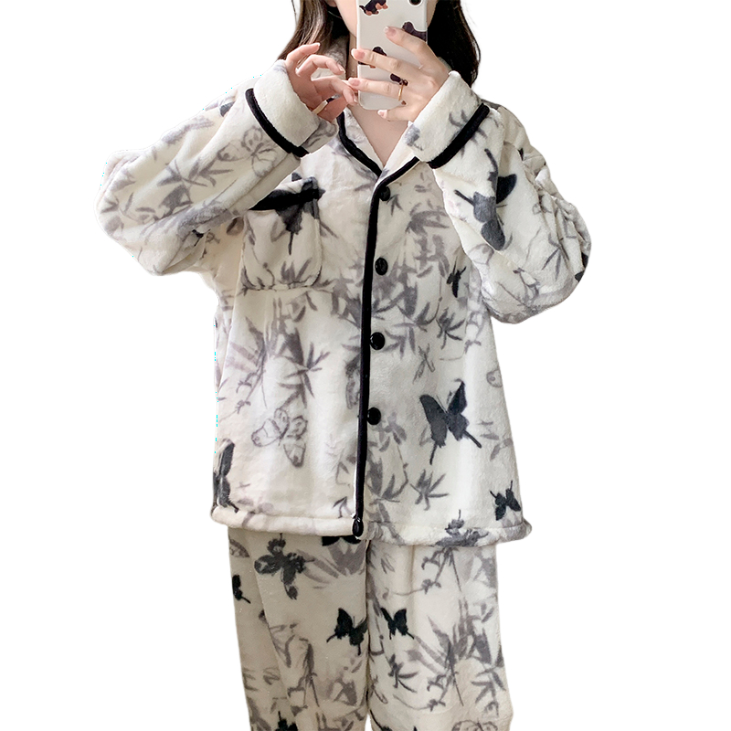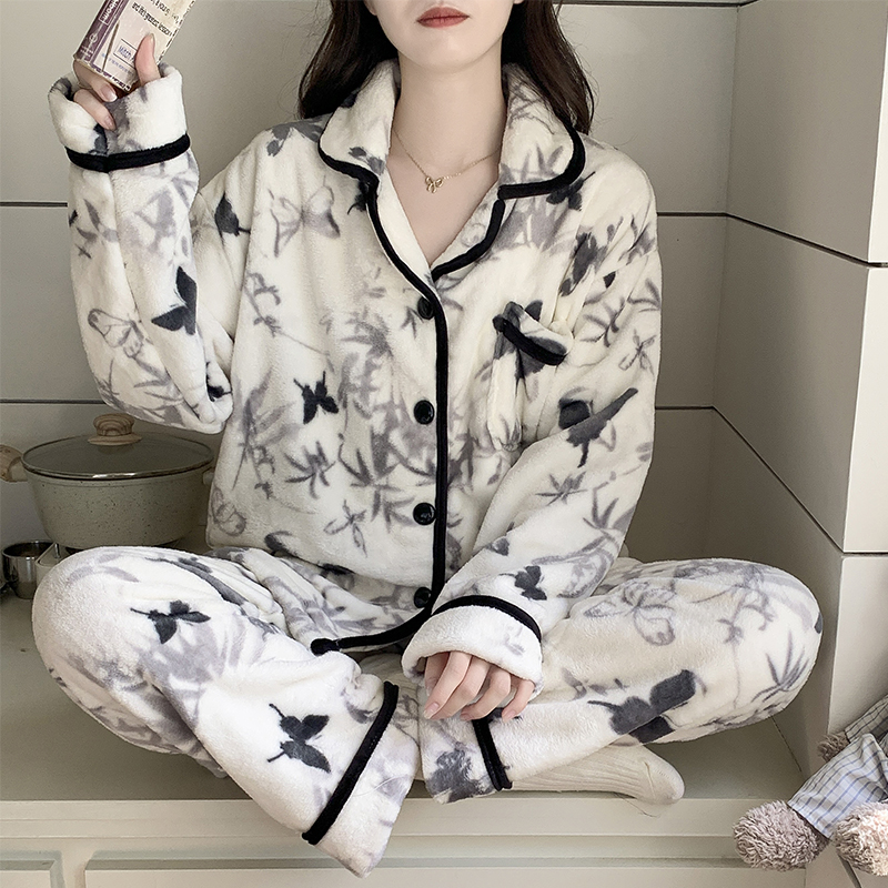 家居服套装 国风加绒加厚法兰绒2025新款 新中式 珊瑚绒睡衣女秋冬季