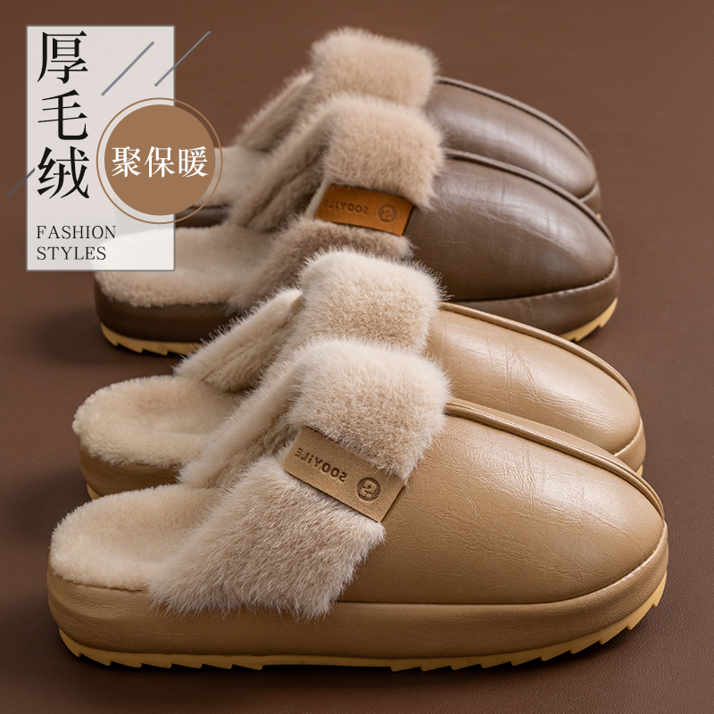 居家室内防滑厚底加绒保暖棉拖鞋 卉兹沐新款 防水情侣毛毛拖冬季