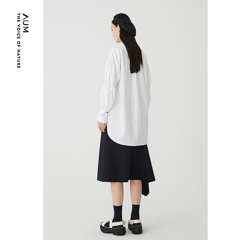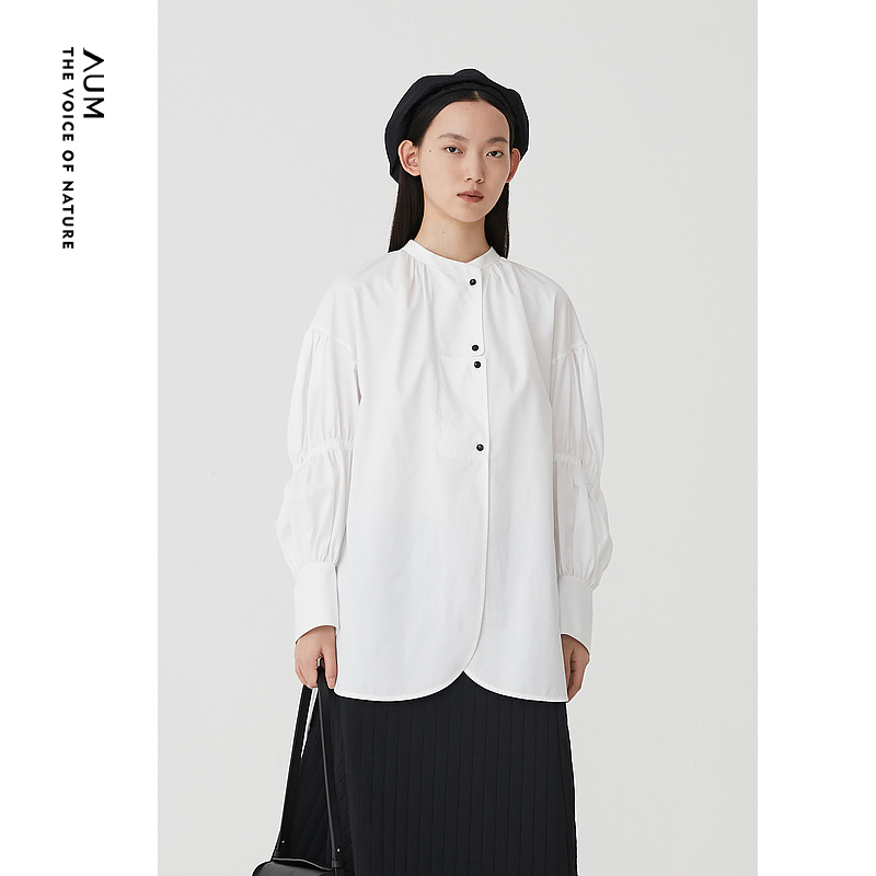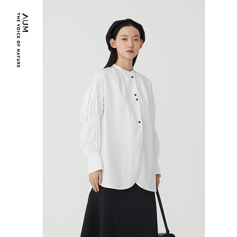 抽褶灯笼袖 白色立领纯色衬衫 AUM噢姆冬季 上衣 会员价1128元