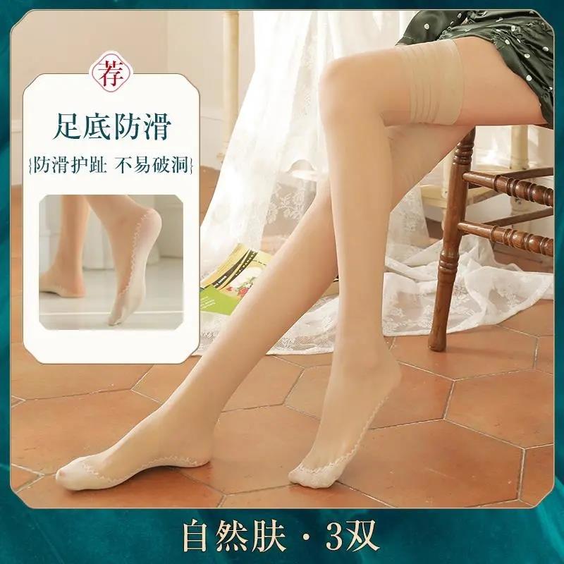 浪莎长筒丝袜女夏季 网袜脚底加棉防滑防勾丝大腿过膝高筒袜潮 薄款